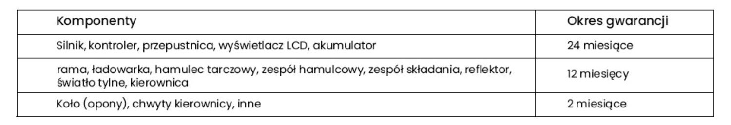 Całość ma certyfikat IP54. Oznacza to ochronę przed pyłem oraz przed bryzgami wody z dowolnego kierunku. Na koniec wspomnę jeszcze o gwarancji. Jest ona różna w zależności od elementu, a najlepiej przedstawia to poniższa tabelka.