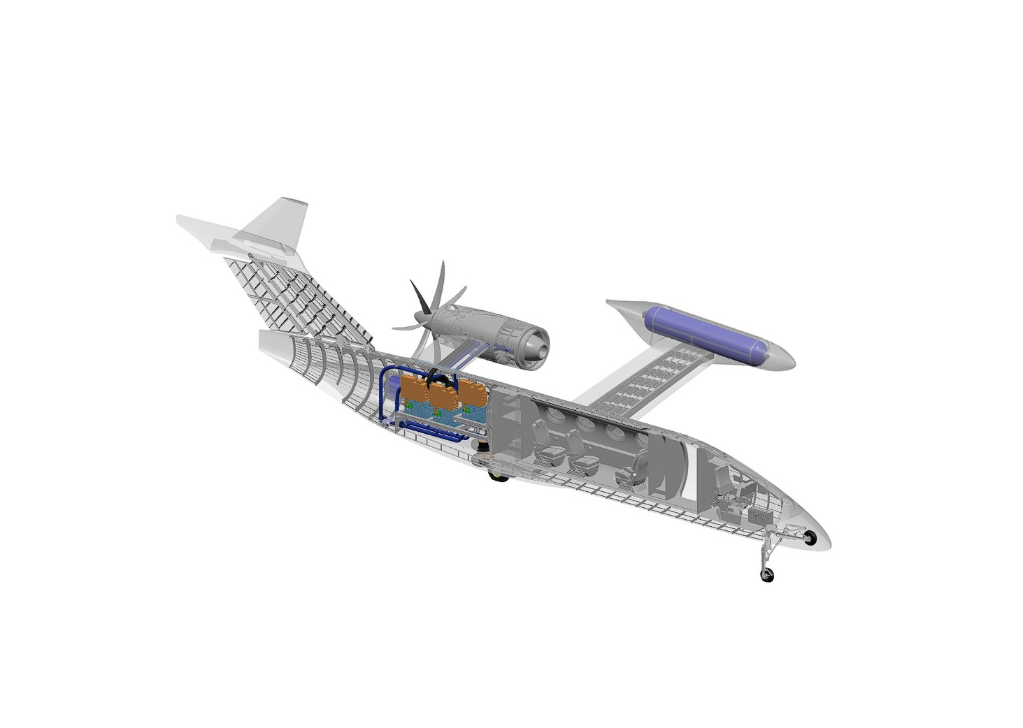 Sercem tego projektu samolotu na wodór nie jest klasyczny silnik odrzutowy spalający paliwo lotnicze, ale układ ogniw paliwowych, który wytwarza energię elektryczną z wodoru. Beyond Aero stawia na konfigurację napędu, która obejmuje dwa śmigła pchające, podczas gdy sam wodór ma być przechowywany w postaci gazowej pod ciśnieniem 700 barów, czyli około 70 MPa, w zbiornikach umieszczonych nad strukturą skrzydła. Firma podkreśla, że taki wybór ma uprościć wejście do eksploatacji, bo pozwala uniknąć dodatkowej złożoności związanej z kriogenicznym magazynowaniem ciekłego wodoru.