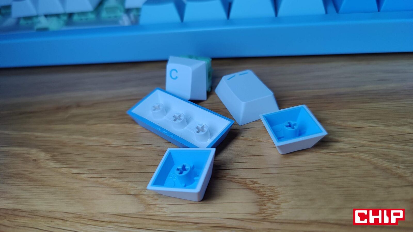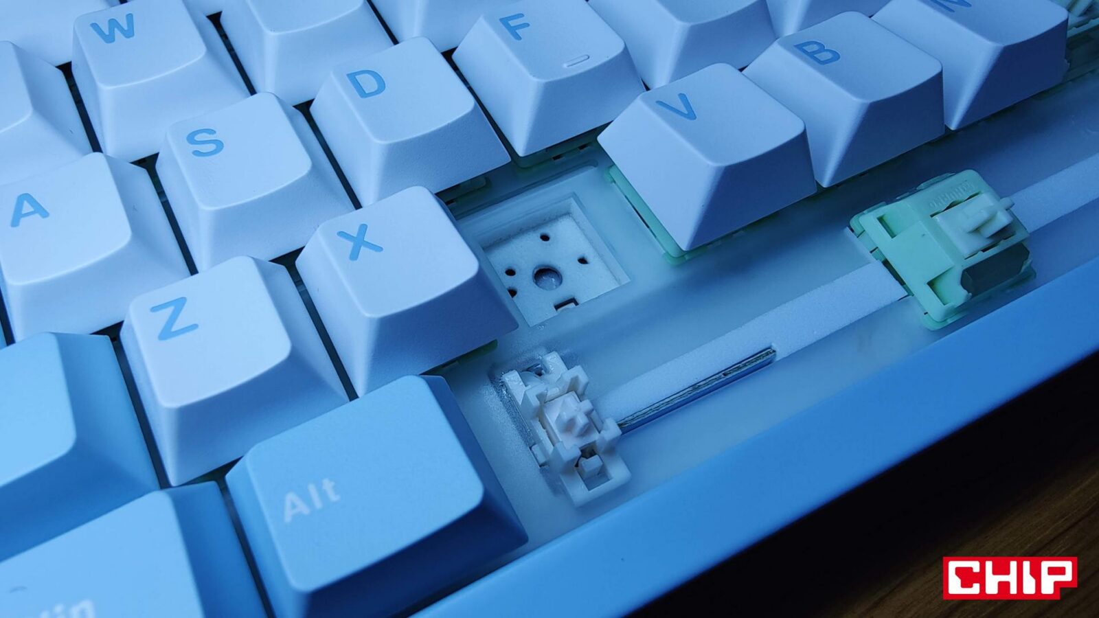 Jako że zestawie z MCHOSE GX87 Lite znajdziemy dwa wymienne przełączniki oraz narzędzie do zdejmowania klawiszy oraz przełączników właśnie, to w pewnym sensie kupujemy klawiaturę na lata. Nic bowiem nie stoi na przeszkodzie, aby wymieniać na bieżąco co gorzej działające przełączniki, albo wymienić je wszystkie na takie o zupełnie innym charakterze, a to dzięki funkcji hot-swap dla przełączników 3- i 5-pinowych.