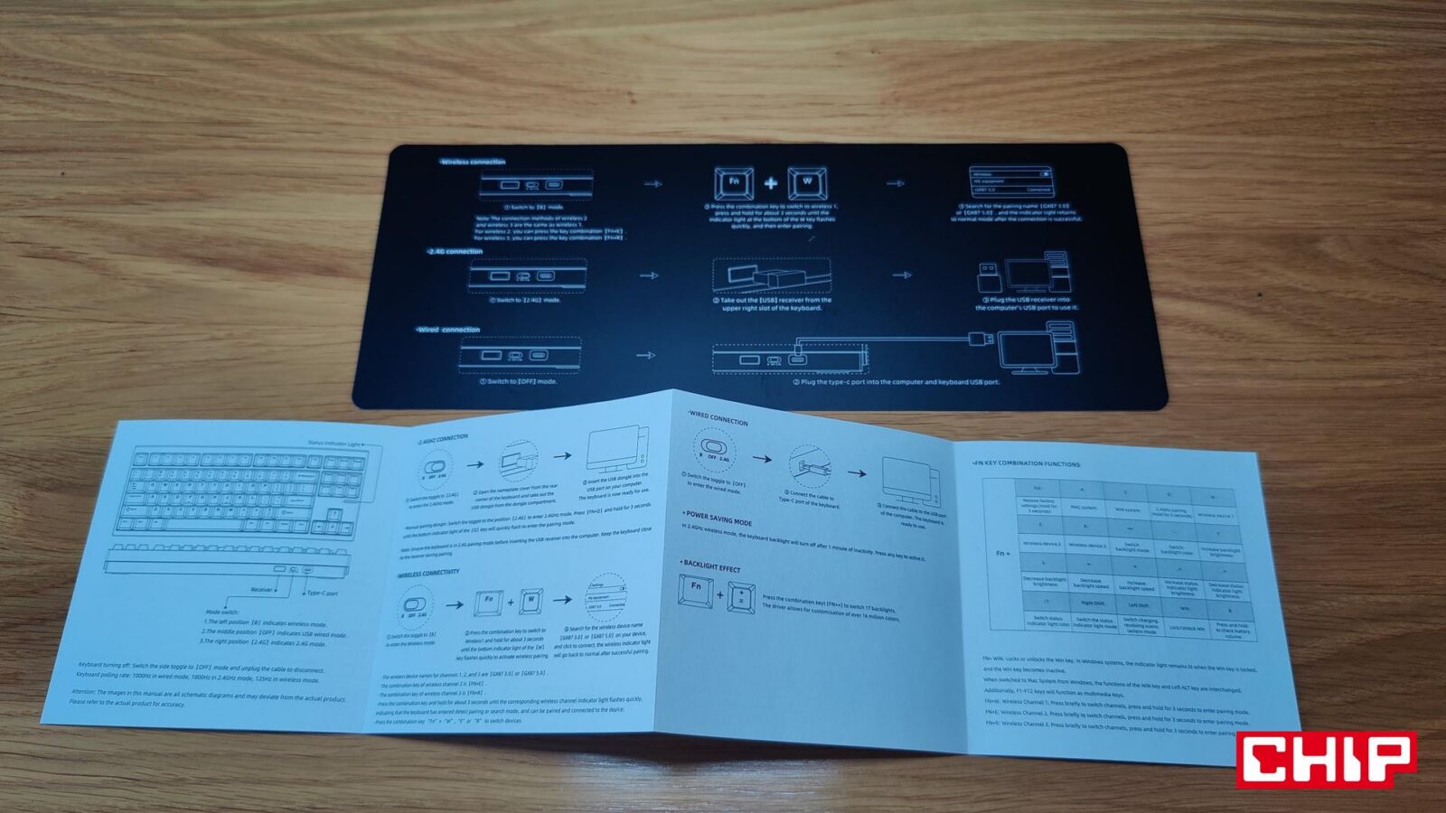 Po kilkudziesięciu godzinach korzystania z tej klawiatury, odnotowałem jedynie 10-procentowy spadek, więc innymi słowy, możecie być pewni, że jednorazowe podłączenie klawiatury w tygodniu, a nawet w miesiącu, wystarczy, aby nigdy nie dać się zaskoczyć rozładowanemu akumulatorowi. Dba o to automatyczne przechodzenie w tryb uśpienia po minucie nieaktywności. Zawsze możecie też skorzystać z kombinacji Fn+B, aby podejrzeć aktualny poziom naładowania w formie podświetlenia klawiszy od 1 do 0, gdzie 0, to 100%.