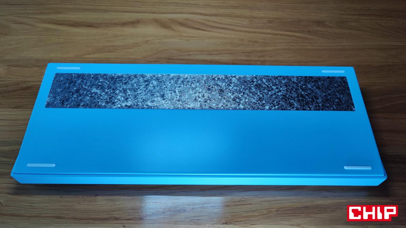 Wersja Lite: Blue Nano Spraying wyróżnia się wykończeniem. Producent nie idzie tu w surowy anodowany metal, tylko w bardziej “miękką” wizualnie powłokę nano spraying, która nadaje obudowie gładszy, bardziej jednolity charakter. Do tego dochodzi obróbka powierzchni określana jako 150 mesh, a to sprawia, że MCHOSE GX87 Lite to nie przypadkowy kawałek metalu. Jest to bardziej konstrukcja, której ktoś faktycznie próbował zapewnić określony efekt premium już od podstaw, bo wykończenia materiału. Co ważne, takie wykończenie i materiał przypada nie tylko na podstawę, ale też górną część obudowy.