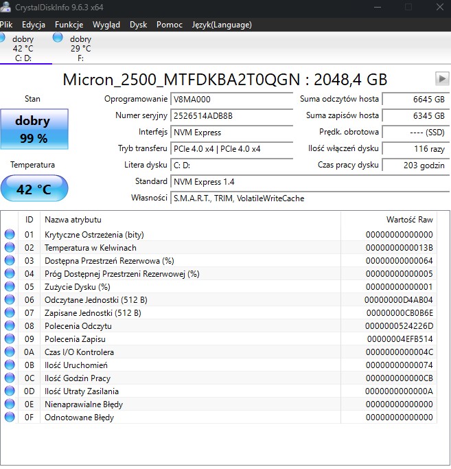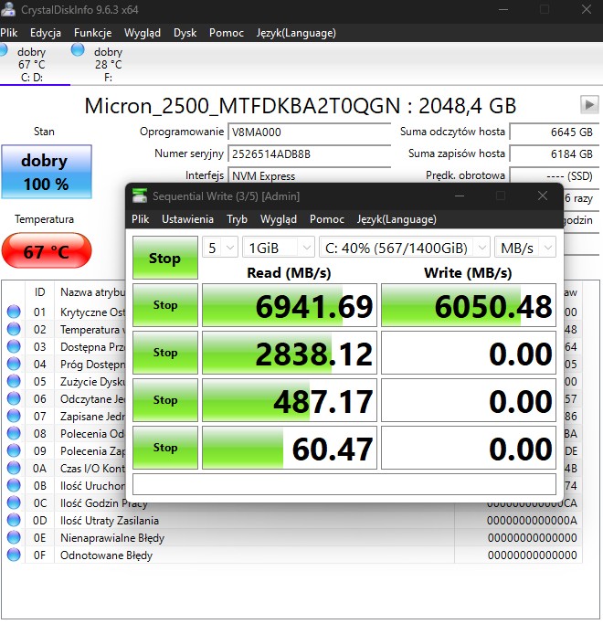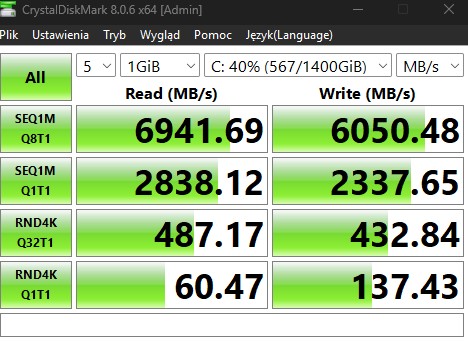 Magazyn danych to z kolei solidny dysk SSD o pojemności 2 terabajtów w formie nośnika na M.2 obsługującego połączenie PCIe 4.0. Chociaż jest szybki i trudno mu cokolwiek zarzucić, to niestety okupuje jedyne dostępne złącze na dysk, co obok pamięci RAM dorzuca kolejny problem w razie chęci rozbudowania laptopa, bo jeśli kiedyś zabraknie przestrzeni, wymiana oznacza migrację całego systemu. Musimy jednak pamiętać, że całe 2 TB wolnej przestrzeni to i tak sporo (zwłaszcza że to nie maszyna do grania w gry ważące ponad 100 GB), a obecność Thunderbolt 4 gwarantuje, że odpowiedni dysk zewnętrzny nigdy nie zawiedzie wydajnością.