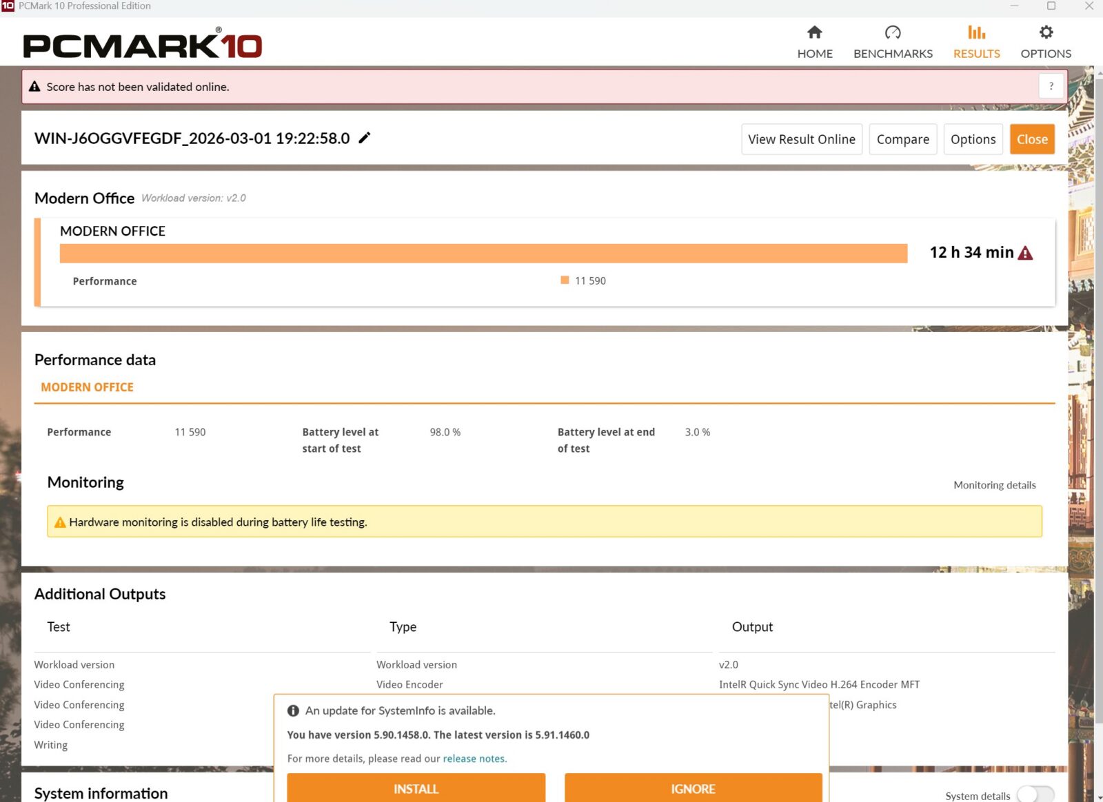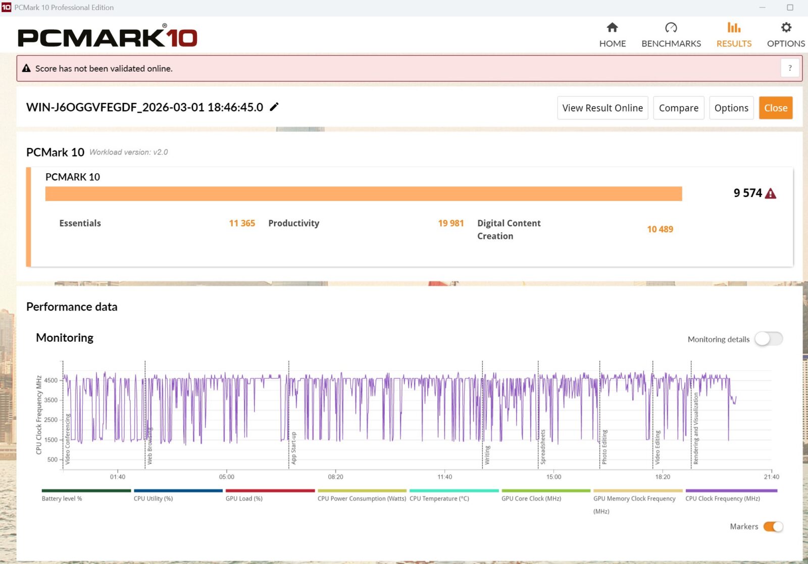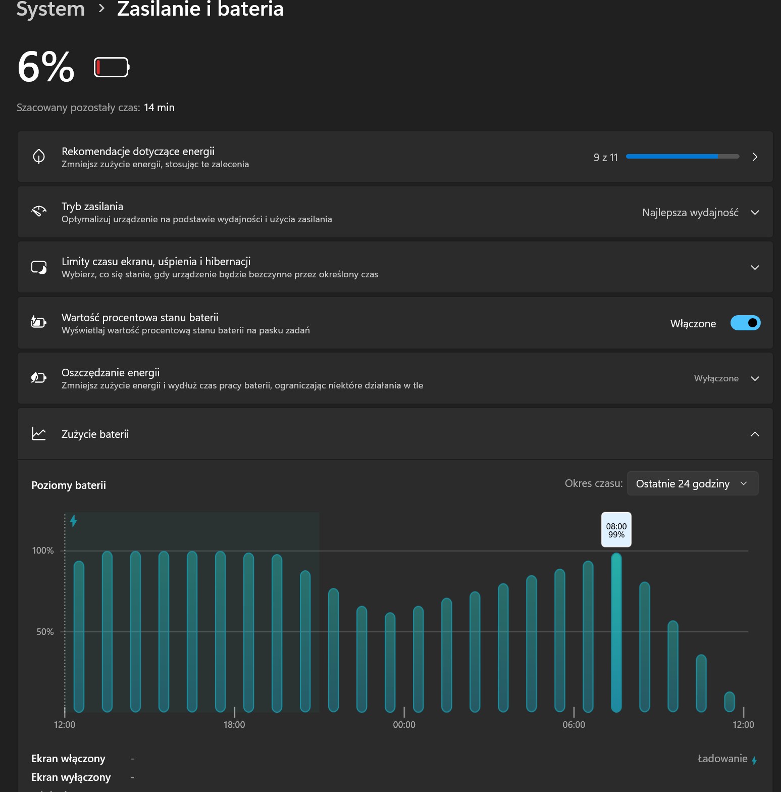 Sama energooszczędność sprzętu w połączeniu z 81-Wh akumulatorem robi wrażenie i to nawet pomimo tego, że mamy tutaj 16-calowy i 120-Hz wyświetlacz o wysokiej rozdzielczości. Dwugodzinny seans filmu z włączoną przeglądarką w tle przy 80-procentowej jasności ekranu doprowadza do spadku poziomu naładowania o około 15%, opracowywanie prostej gry 2D w silniku Unity zbija naładowanie o około 30% w trybie wydajności, a wykorzystywanie sprzętu w pełni (100% jasność, najwyższy tryb zasilania, ciągła rekompilacja i testy gry) pozwala na niczym niezmąconą pracę przez jakieś trzy godziny. Test Modern Office w PCMark 10 na 80% jasności wskazał z kolei aż 12,5-godzinną wytrzymałość na jednym ładowaniu.