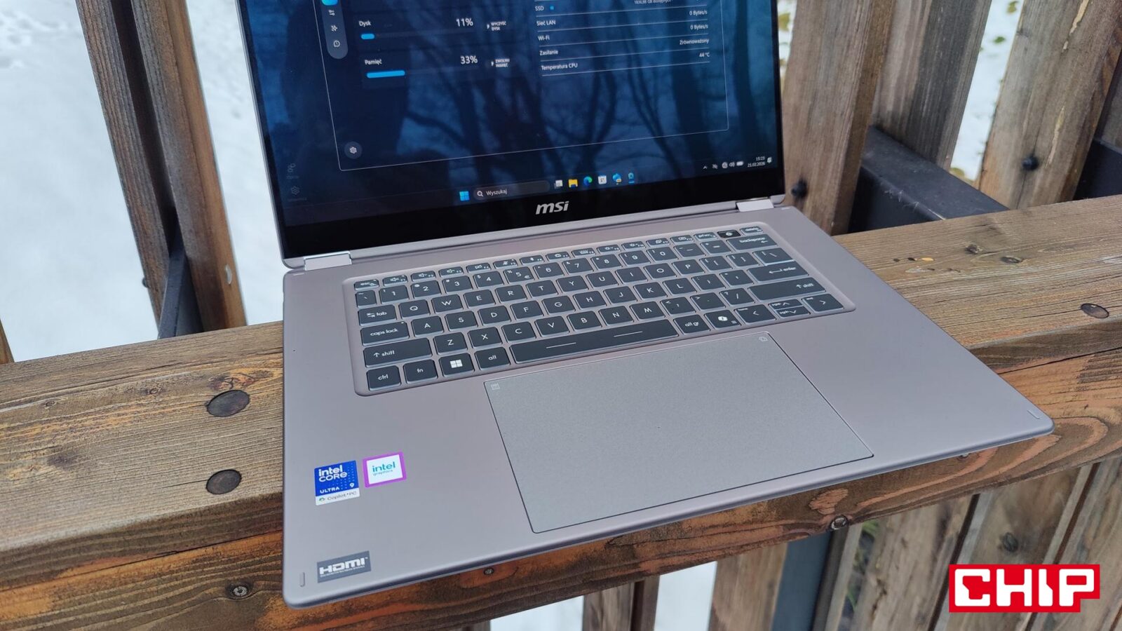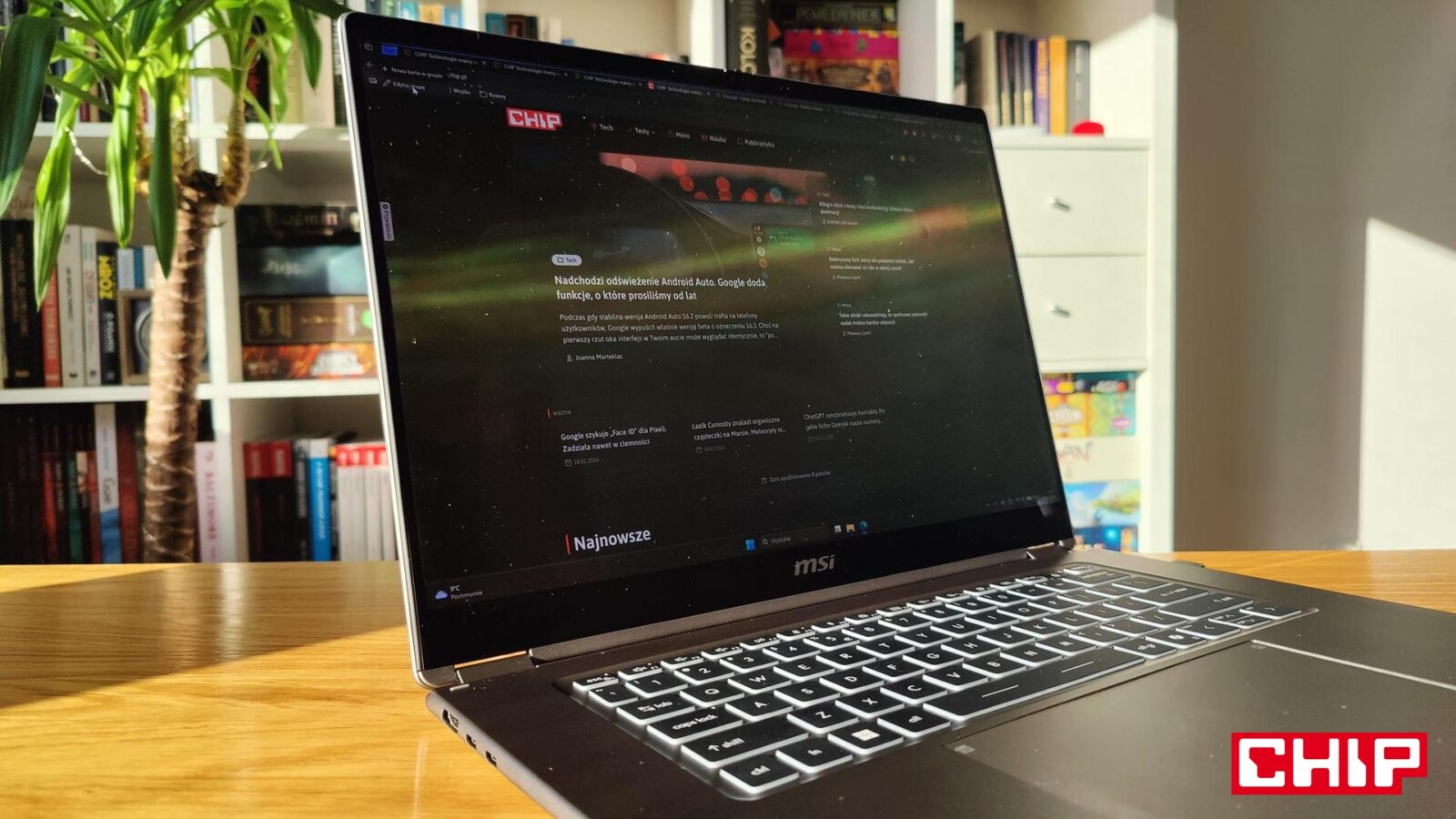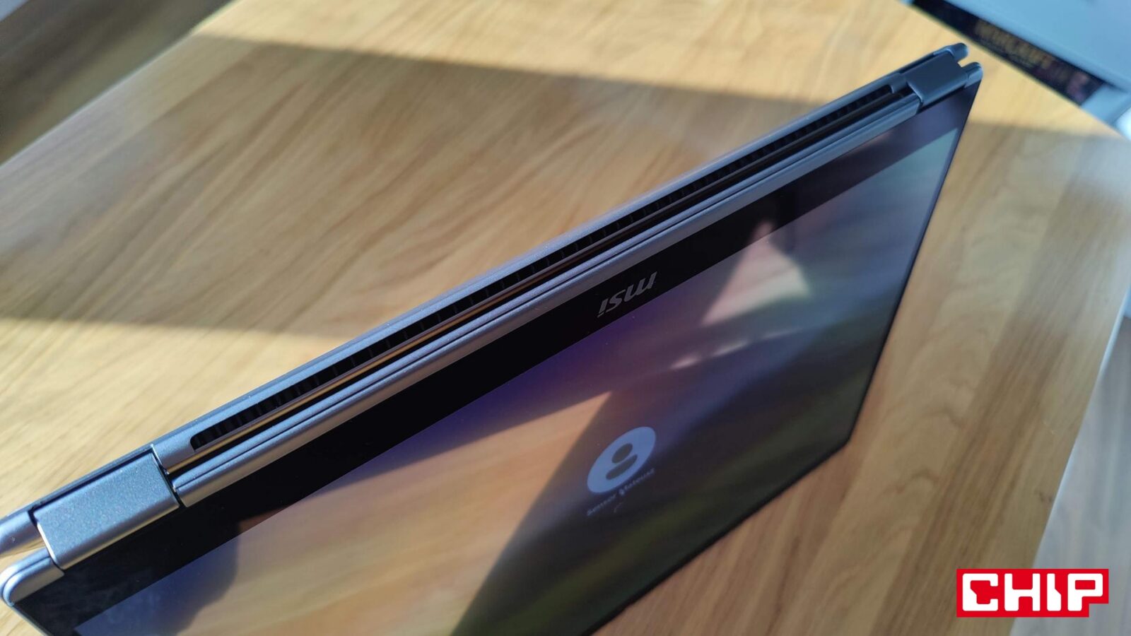Wadą ekranu jest z kolei jego połyskliwa natura, która odbija ostre światło i sprawia, że korzystanie z MSI Prestige 16 Flip AI+ C3MTG-067PL przy słonecznej pogodzie jest po prostu utrudnione. Problem odczują również osoby w pomieszczeniach z ostrymi źródłami światła, które “padają” bezpośrednio na ekran.