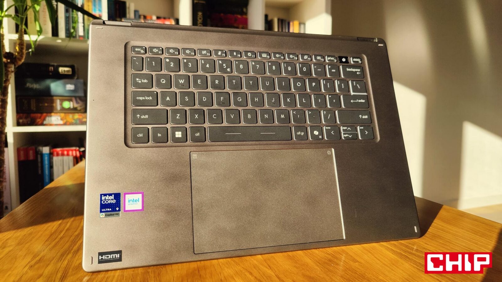 W codziennej pracy MSI Prestige 16 Flip AI+ C3MTG-067PL pokazuje, że rzeczywiście jest świadomy swojego otoczenia. Pozostawiając kamerę odblokowaną i obracając głowę w bok na dłuższy moment, ekran automatycznie obniża swoją jasność, a kiedy odejdziemy od niego, to automatycznie się zablokuje, aby “powrócić do żywych” po wykryciu naszej obecności. Działa to zaskakująco dobrze i sprawdza się idealnie zwłaszcza po połączeniu z odblokowywaniem komputera twarzą (Windows Hello), choć naturalnie mamy też dostęp do czytnika linii papilarnych, który znalazł się bezpośrednio w przycisku on/off umiejscowionym w prawym górnym rogu klawiatury (między print-screen a delete).