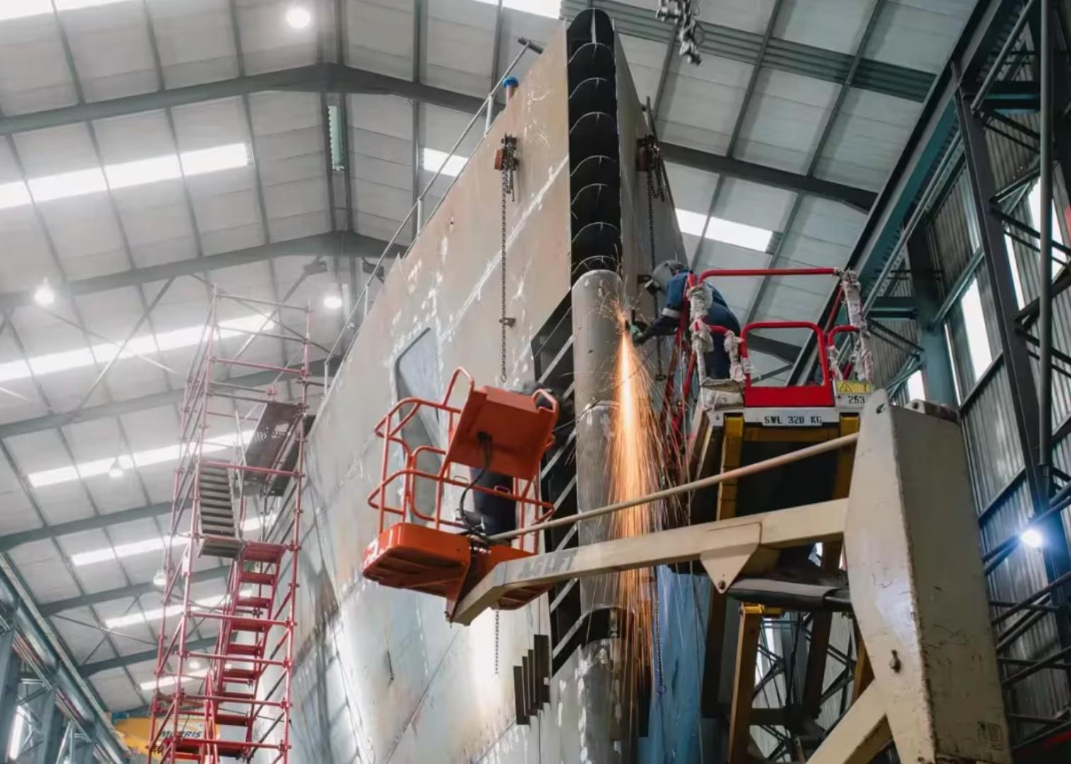 Bezzałogowce nawodne klasy Liberty mają powstawać w nakładzie 10-20 egzemplarzy rocznie. Ich budowa ma odbywać się w Conrad Shipyard w Luizjanie, przy wykorzystaniu wysoko zautomatyzowanych linii panelowych i zrobotyzowanego spawania. Czy takie tempo jest realne? Wbrew pozorom, tak, bo okręt bez załogi nie potrzebuje całej infrastruktury “hotelowej”. Brak koi, sanitariatów i systemów podtrzymania komfortu ogranicza masę, złożoność instalacji i zakres integracji. Skraca to tym budowę, bo mniej elementów musi przejść przez piekło montażu, testów i odbiorów.