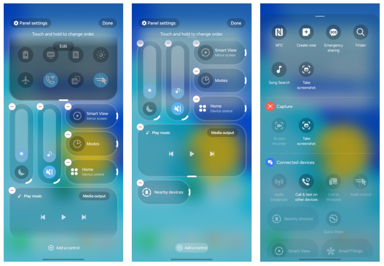 Pojawił się także nowy element interfejsu – pływający pasek kart w kształcie pigułki z efektem matowego szkła. Zastępuje on tradycyjne, płaskie paski na dole ekranu w wielu aplikacjach systemowych. Ekran blokady stał się z kolei „inteligentniejszy” – zegar i data potrafią teraz automatycznie przesuwać się tak, aby nie zasłaniać głównego obiektu na tapecie, a dynamiczne wizualizacje pogody dostosowują się do warunków za oknem w czasie rzeczywistym.