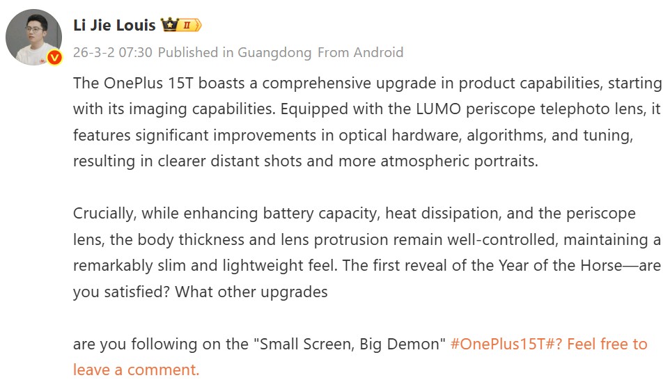 Peryskop LUMO i Snapdragon 8 Elite – co zaoferuje OnePlus 15T?
