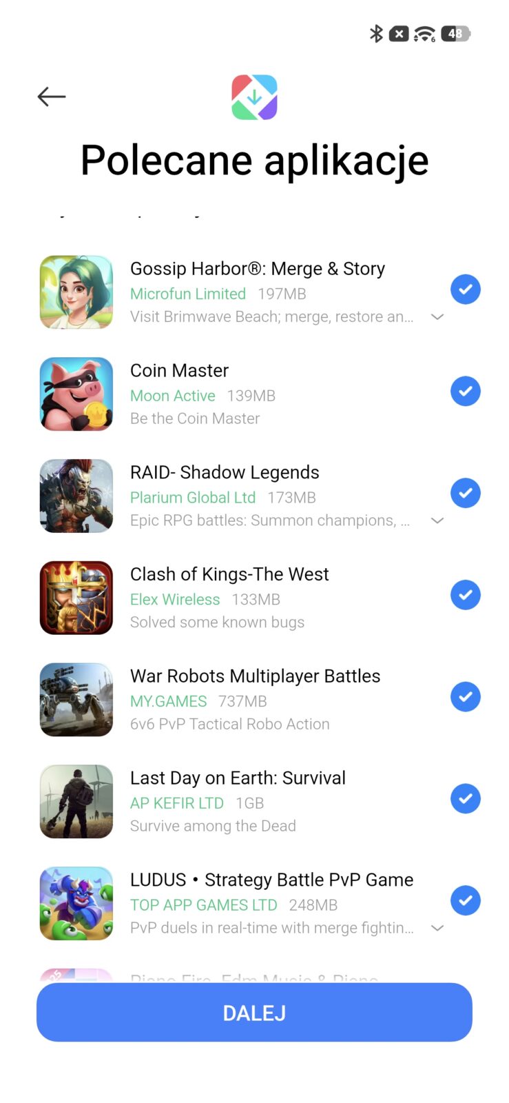 Pierwsze chwile z POCO X8 Pro Max nie napawają optymizmem. Początkowa konfiguracja kończy się nie na podstawowych ustawieniach, synchronizacji czy ustawieniu haseł, a na konieczności przejrzenia całej masy syfu, który telefon pobiera bez naszej zgody. Facebook, Instagram, Temu, Netflix, TikTok, Booking, Amazon Shop, Opera News, AliExpress, LinkedIn i cała masa gier – to dostajemy w prezencie od producenta, a jak przeklikamy panel “polecanych aplikacji”, to dociągniemy kolejne kilka kolejnych wątpliwych gier.
