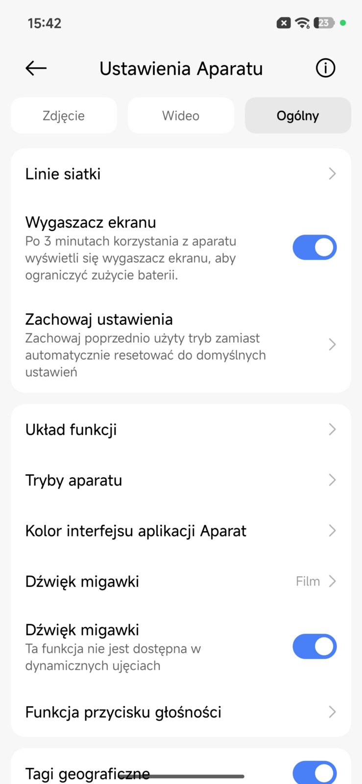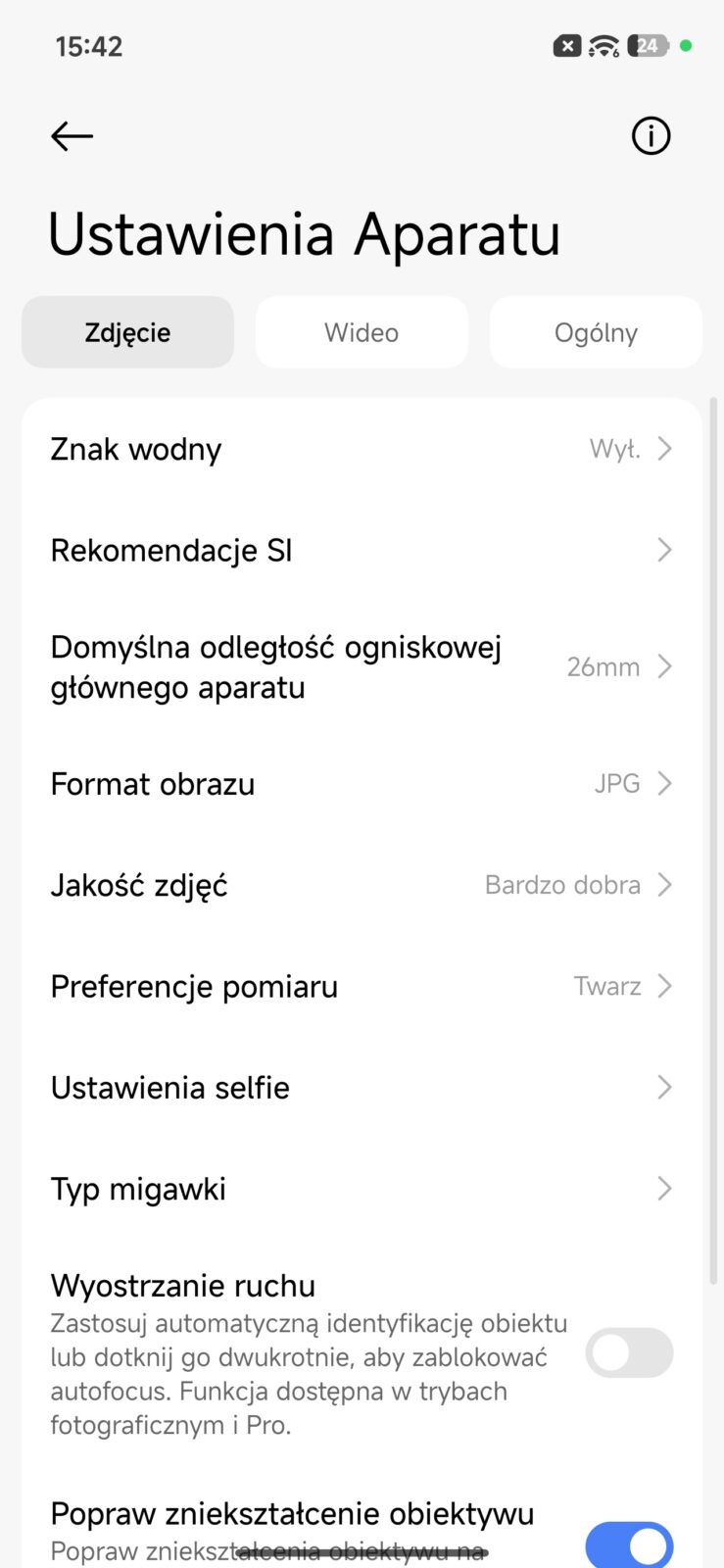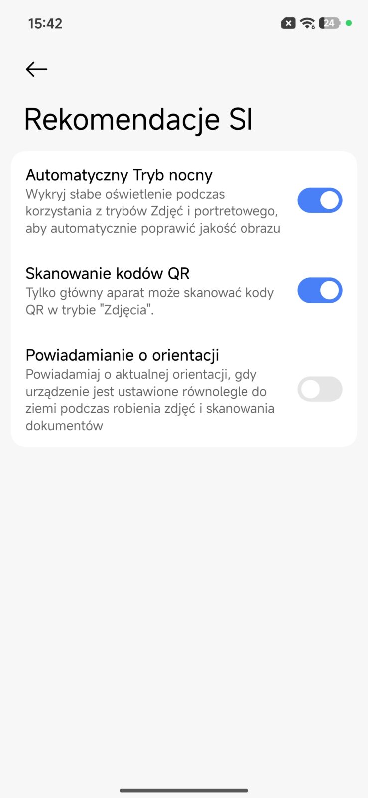 Aplikacja aparatu nie należy jednak do ubogich. Przy zdjęciach tylnym modułem dostajemy dynamiczne ujęcia, rejestrowanie ruchu, tryb dokumentów, śledzenie ostrości w ruchu, tryb portretowy, tryb Pro, osobny tryb 50 MP, migawkę głosową, HDR, panoramę, długie naświetlanie i serię synchronizowaną. W praktyce oznacza to, że sam telefon daje trochę przestrzeni do zabawy i nie zamyka użytkownika wyłącznie w trybie automatycznym. Tryb Pro pozwala ręcznie podłubać przy parametrach, tryb dokumentów sprawdza się przy skanowaniu papierów, a śledzenie ostrości i rejestrowanie ruchu mają pomagać wtedy, gdy fotografowany obiekt nie chce stać w miejscu. Szkoda tylko, że ten rozbudowany zestaw funkcji nie idzie w parze z bardziej ambitnym zapleczem sprzętowym po stronie dodatkowych aparatów.