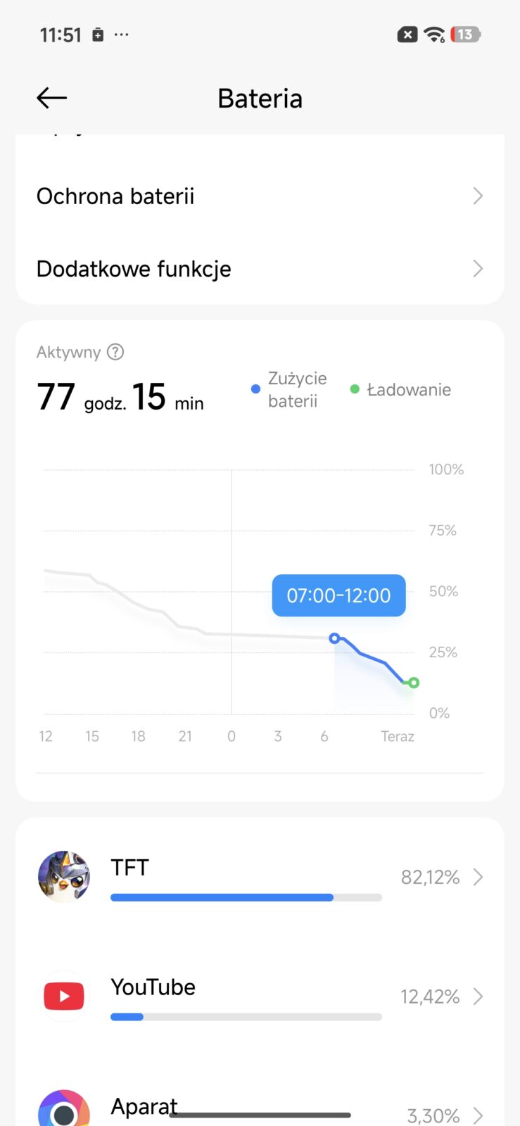 Tak pojemny akumulator sprawia, że przegracie na POCO X8 Pro Max cały dzień bez konieczności sięgania po powerbank, a jeśli nie po drodze Wam z grami na telefon, to możecie liczyć na 2-3 dni wytrzymałości na jednym ładowaniu. Wszystko zależy od tego, jak korzystacie ze smartfonu, ale świetny pogląd na tę wytrzymałość zapewnia fakt, że 3-godzinne oglądanie YouTube na pełnej jasności powoduje średnio 10-procentowy spadek naładowania. Taki zapas energii jest też czymś, czym możecie się dzielić, a to za sprawą ładowania zwrotnego o mocy do 27 watów.