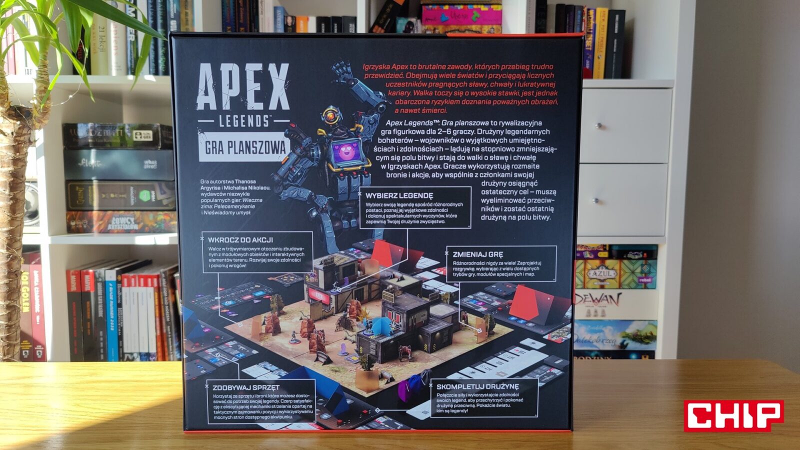 Ja sam patrzę na Apex Legends: Gra Planszowa właśnie w ten sposób. Nie jako na planszówkę dla każdego fana gry wideo, nie jako na “bezpieczny” hit na każdą okazję, ale jako na rozbudowaną, ambitną adaptację, która wreszcie dowozi to, co w podobnych projektach zbyt często się gubi. Jest tu klimat, jest napięcie, jest bardzo przyjemna taktyczna głębia i jest poczucie, że nasze decyzje naprawdę mają znaczenie. Szkoda tylko, że całość została obudowana tak dużą ilością organizacyjnych przeszkód w momencie wejścia, bo przy nieco lepszym wdrożeniu nowych graczy i odrobinę sprawniejszym setupie mogłaby to być pozycja znacznie łatwiejsza do polecenia szerzej. W kwestii wykonania można z kolei przyczepić się wyłącznie do kartonowych budynków, które po ustawieniu nie są idealnie równe, co może powodować przechylanie się niektórych elementów.