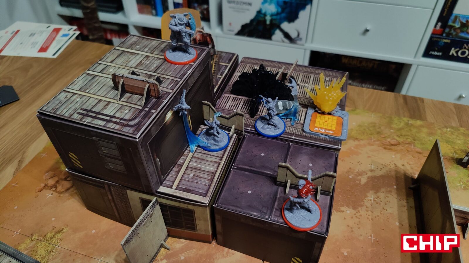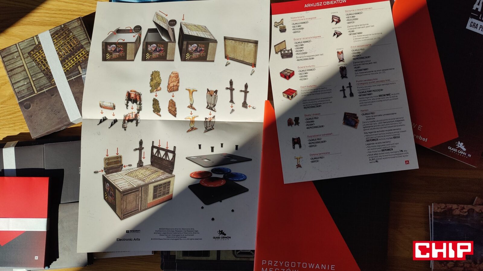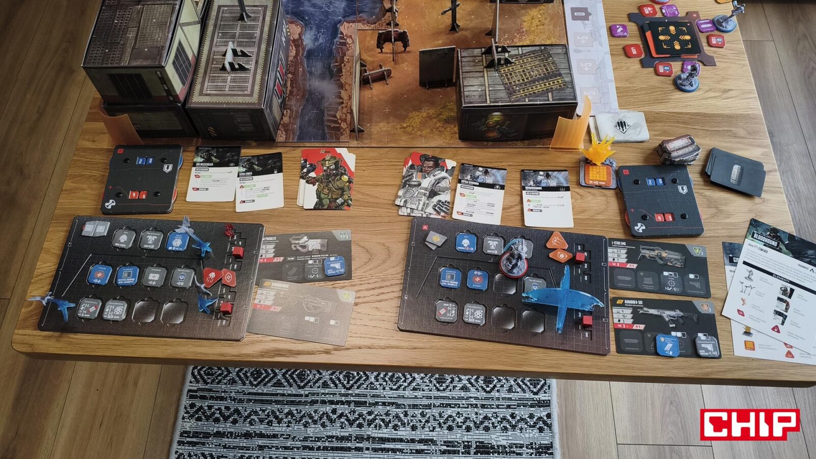 Kiedy już poradzimy sobie z wysoką poprzeczką co do wejścia w grę Apex Legends: Gra Planszowa, to od razu czeka na nas kolejne wyzwanie. Przygotowanie rozgrywki w tę produkcję nie jest łatwe i wymaga ogromnego stołu, bo musimy za każdym razem okiełznać ogromną ilość elementów i przygotować całą planszę do gry, co obejmuje mozolne nieco składanie budynków ze specjalnych papierowych elementów. Na ten proces trzeba poświęcić dobrą godzinę, więc trzymam kciuki, że możecie poświęcić jeden stół na rozłożenie tej gry i pozostawienie jej w nienaruszonym stanie na kilka rozgrywek. Zwłaszcza że pierwsze gry trwają ewidentnie dłużej niż obiecane przez producenta 60-90 minut.