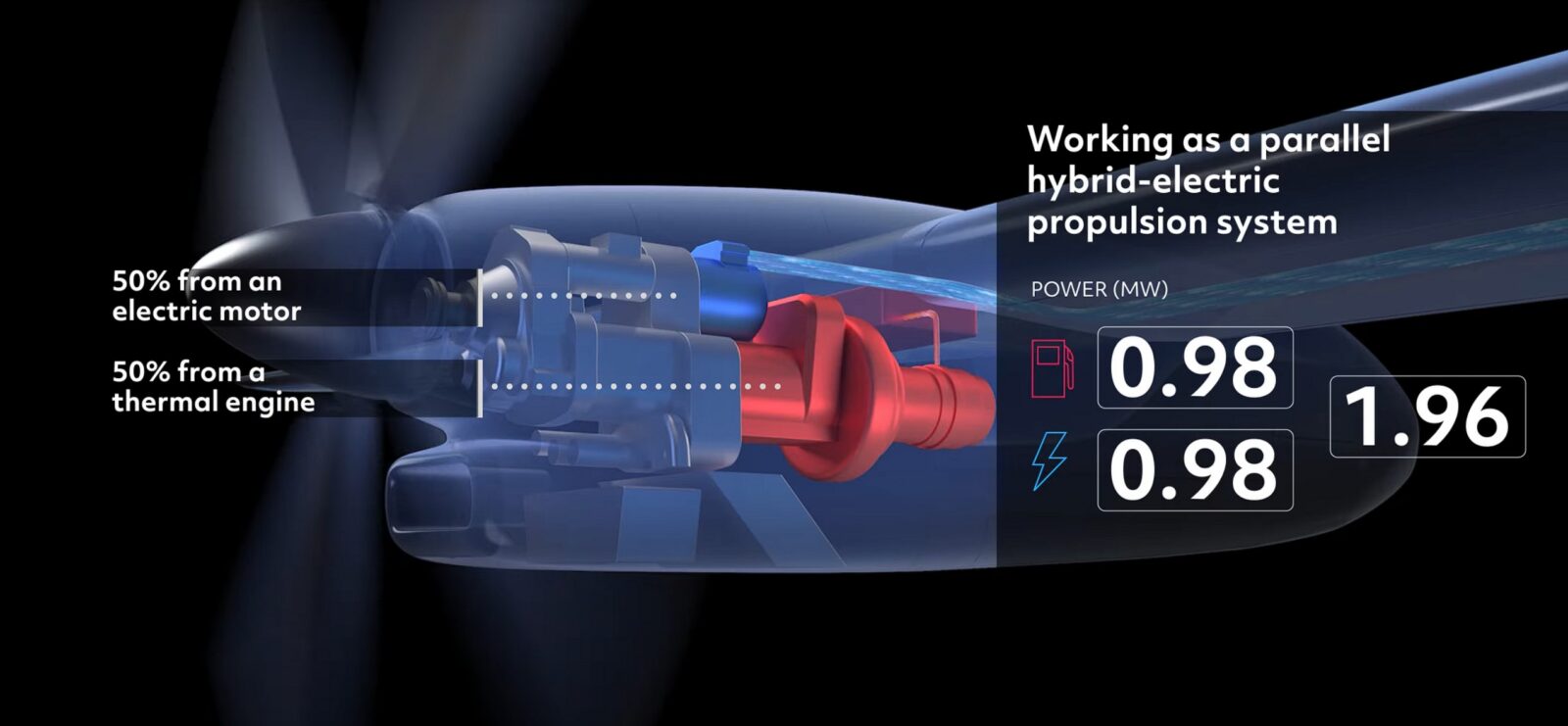 Stąd pomysł, by nie zastępować całego silnika odrzutowego, a zamiast tego go wspierać. W lotach regionalnych profil misji jest bowiem wdzięczny dla hybrydy, obejmując sporo startów i wznoszeń, czyli faz, w których zapotrzebowanie na moc jest wysokie, a z punktu widzenia zużycia paliwa liczy się każdy procent. W tym układzie klasyczny silnik cieplny (w praktyce turbina w konfiguracji turbośmigłowej) ma robić swoje w przelocie, a elektryka ma pomagać na ziemi, przy starcie i we wznoszeniu, czyli dokładnie tam, gdzie “dodatkowy zastrzyk” mocy może przełożyć się na mniejsze zużycie paliwa lub lepiej zoptymalizowany punkt pracy całego układu.
