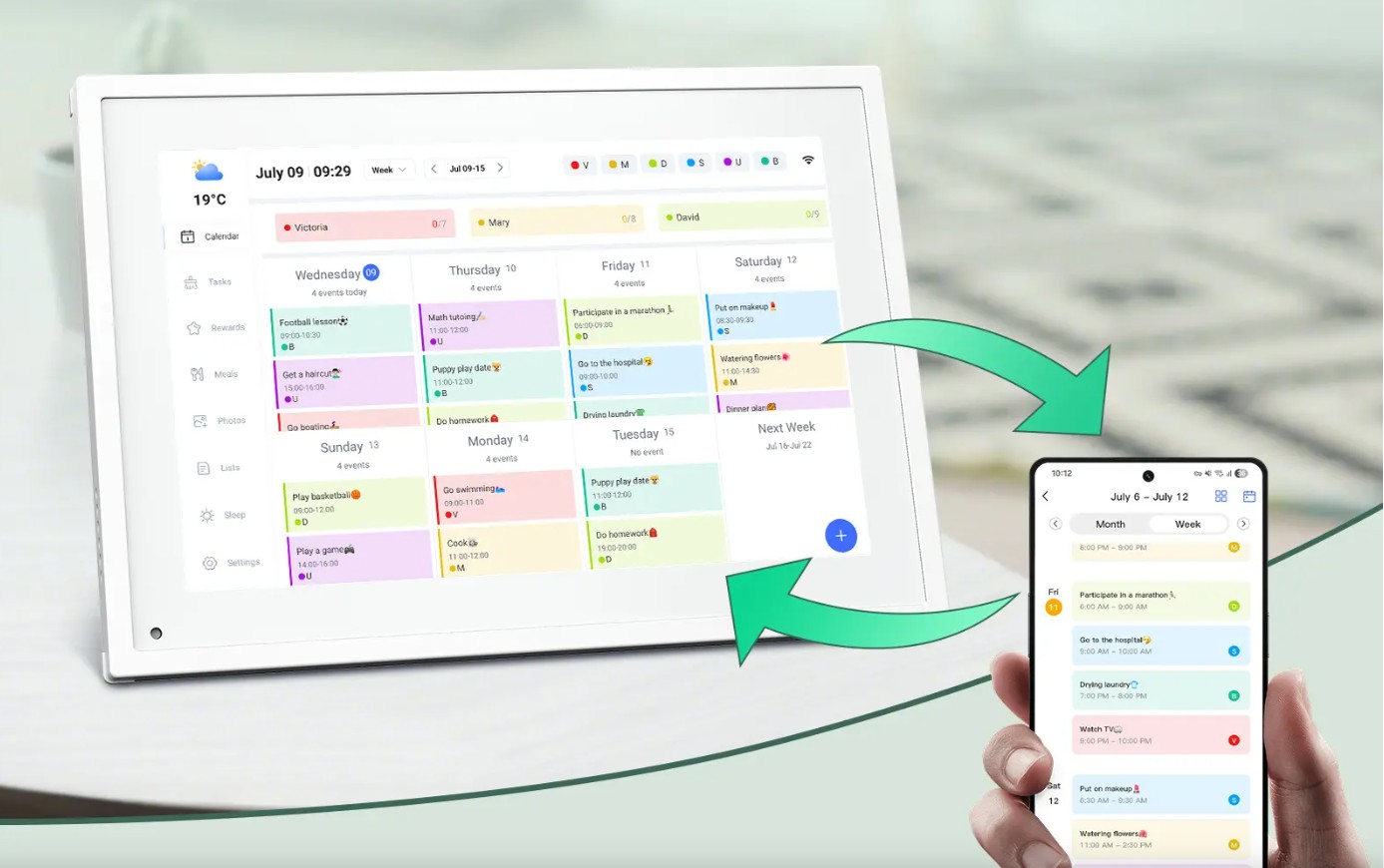 To nie jest zwykła ramka na zdjęcia. TABWEE stworzyło dedykowany, cyfrowy kalendarz, który ma wyeliminować papierowy bałagan z kuchni. Urządzenie synchronizuje się w czasie rzeczywistym z kalendarzami Google, Apple i Outlook, więc każde spotkanie dodane na telefonie natychmiast pojawia się na ekranie w centralnym punkcie domu.