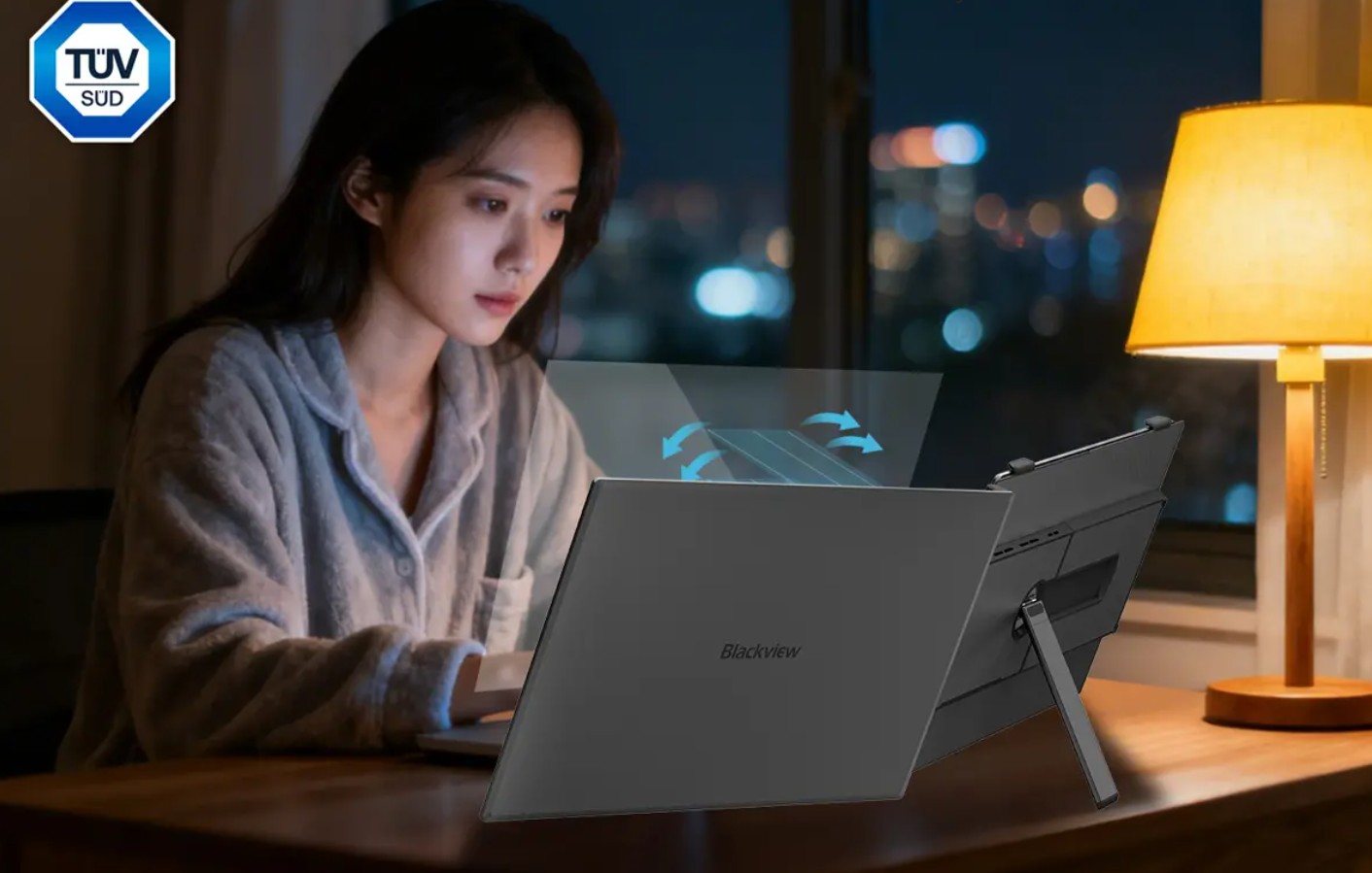 Dla osób pracujących mobilnie, 14-calowy dodatkowy ekran od Blackview to sposób na zwiększenie wydajności bez dźwigania ciężkiego sprzętu. Ważną cechą jest zasilanie i przesyłanie obrazu za pomocą jednego kabla USB-C (Plug & Play).