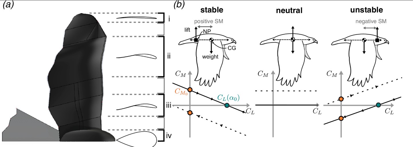 W materiałach towarzyszących publikacji pojawia się konkret liczbowy: podczas przejścia przez przesmyk ptak przechodzi od konfiguracji rozłożonej, bardziej “nerwowej”, do konfiguracji schowanej, bardziej stabilnej. W samej publikacji opisano zmianę efektywnego marginesu statycznego od około -25% do 19% cięciwy odniesienia. To ogromny skok jak na jeden manewr i właśnie dlatego temat zrobił się głośny. Warto też podkreślić drugi wątek z opisu badania: zależność między momentem pochylającym a siłą nośną dla konfiguracji “rozłożonych” ma charakter nieliniowy. W praktyce takie nieliniowości są często tym, co daje elastyczność zachowania w różnych warunkach lotu, ale jednocześnie utrudnia przewidywanie i sterowanie, gdy próbujemy przenieść zjawisko do maszyny o innej skali i innych ograniczeniach.