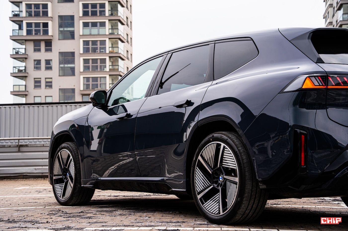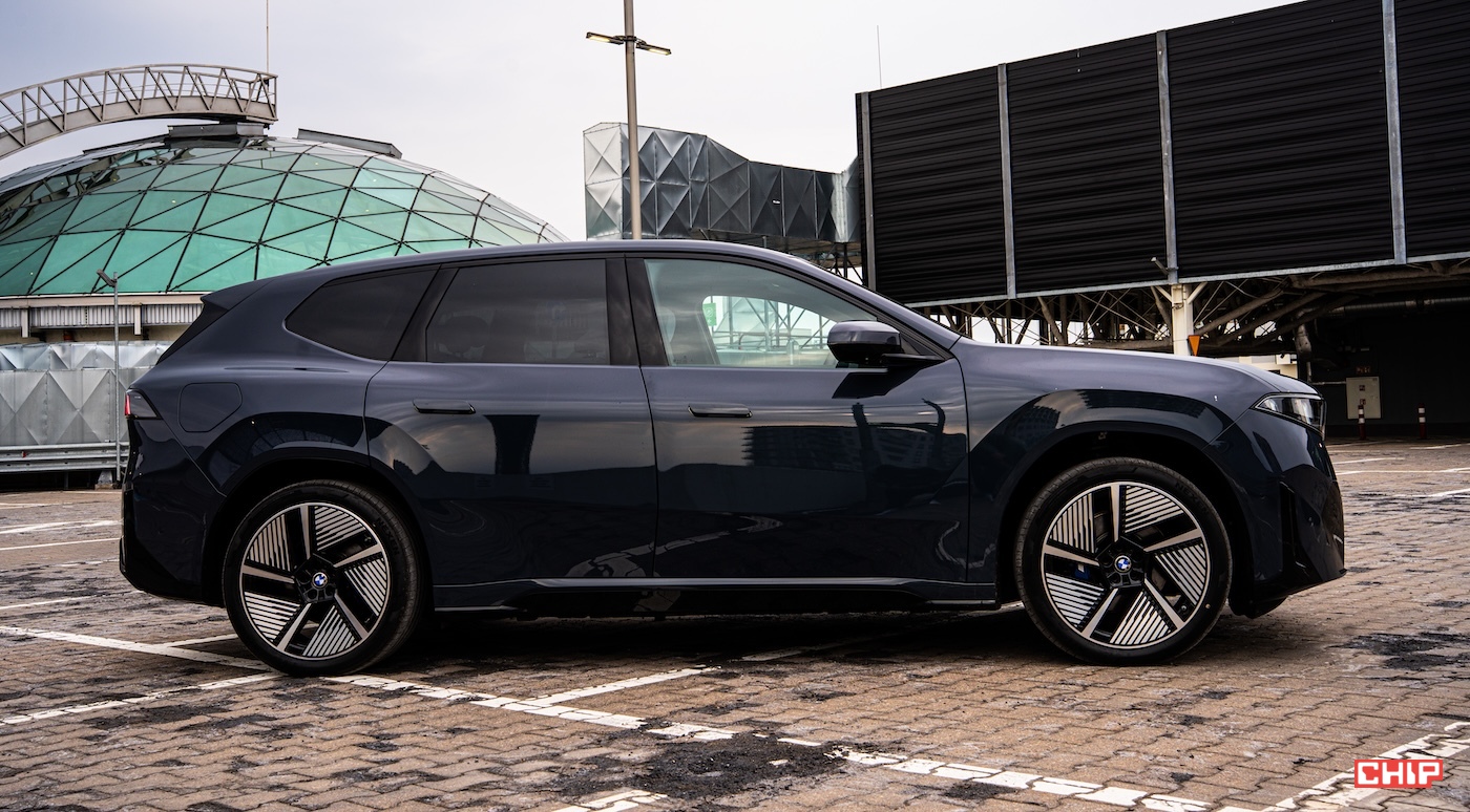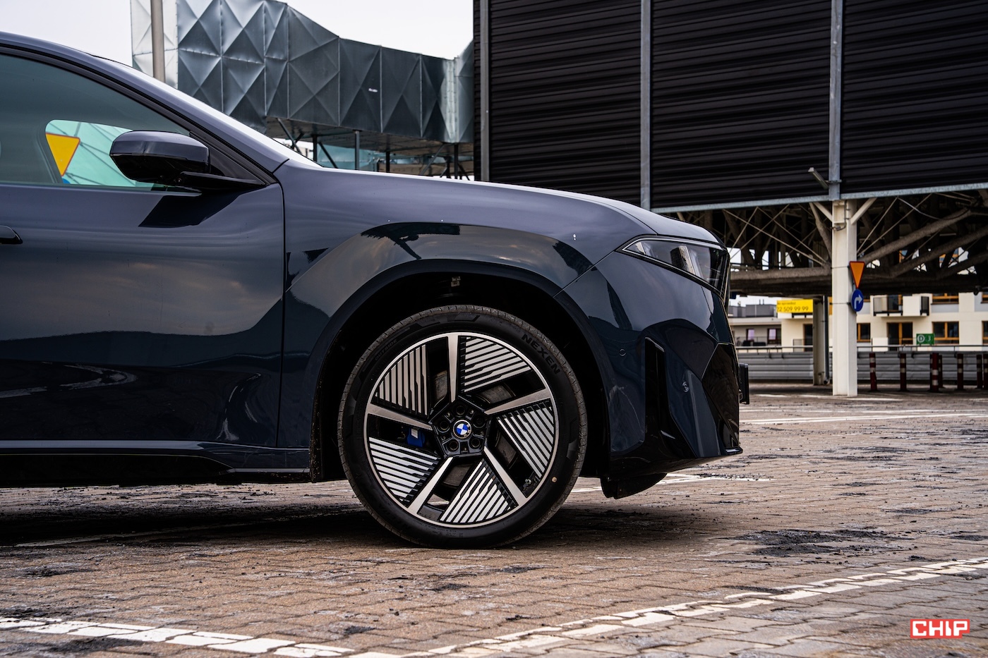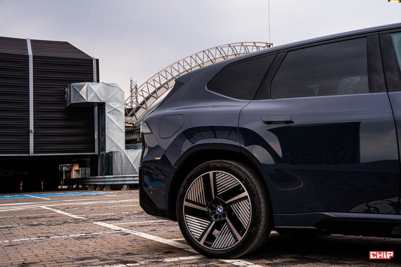 Nie sposób pominąć też kół, bo to właśnie one bardzo mocno budują prezencję nowego iX3. W tym samochodzie felgi nie są tylko dodatkiem domykającym konfigurację, ale jednym z kluczowych elementów całej stylistycznej kompozycji. Duże, wyraźnie zarysowane, osadzone w mocno zaznaczonych nadkolach sprawiają, że sylwetka nabiera odpowiedniej siły i wizualnego ciężaru, ale bez wrażenia ociężałości. To bardzo ważne, bo w elektrycznych SUV-ach łatwo przesadzić w jedną ze stron — albo zrobić auto zbyt masywne, albo przesadnie wygładzone. Tutaj udało się zachować świetny balans.