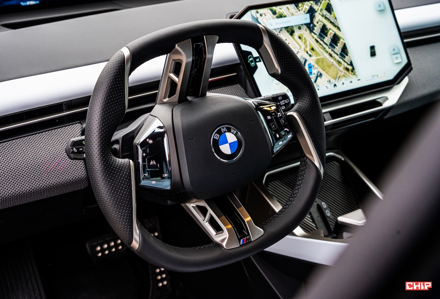 Ogromne wrażenie robi też sama kierownica. Nie mam problemu z mocnymi deklaracjami — to najładniejsza kierownica, z jaką kiedykolwiek miałem do czynienia. I nie tylko w BMW, ale w ogóle. Oczywiście z jednym zastrzeżeniem — wolanty to zupełnie osobna historia i mają szczególne miejsce w moim sercu, zwłaszcza wtedy, gdy towarzyszy im dobrze zestrojone steer-by-wire. Jeśli jednak trzymamy się klasycznej kierownicy, nowy iX3 w mojej prywatnej hierarchii nie ma dziś konkurencji. Jej forma jest nowoczesna, ale nie dziwaczna. Ma charakter, świetne proporcje i bardzo dobrze współgra z resztą wnętrza. Zachwyca mnie w niej to, jak umiejętnie połączono futurystyczny sznyt z czymś, co wciąż pozostaje eleganckie i motoryzacyjnie naturalne. Prześwity między centralną częścią kierownicy a bocznymi panelami z przyciskami, a także wyraźnie zarysowany pałąk poprowadzony zarówno u góry, jak i na dole, sprawiają, że wygląda ona naprawdę wyjątkowo. To nie jest tylko ciekawie narysowany element kokpitu, ale jeden z najmocniejszych punktów całego wnętrza. Tym bardziej, że za formą idzie tu również treść — świetne materiały, bardzo wysoki komfort użytkowania, elementy Shy Tech pojawiające się wtedy, gdy są potrzebne, oraz haptyczna informacja zwrotna, dzięki której ten minimalizm nie zamienia się w ślepą cyfryzację wszystkiego. W efekcie kierownica idealnie domyka wrażenie obcowania z kokpitem, który jest kosmiczny i futurystyczny, ale ani przez moment nie staje się chłodny czy odklejony od prawdziwej motoryzacji.