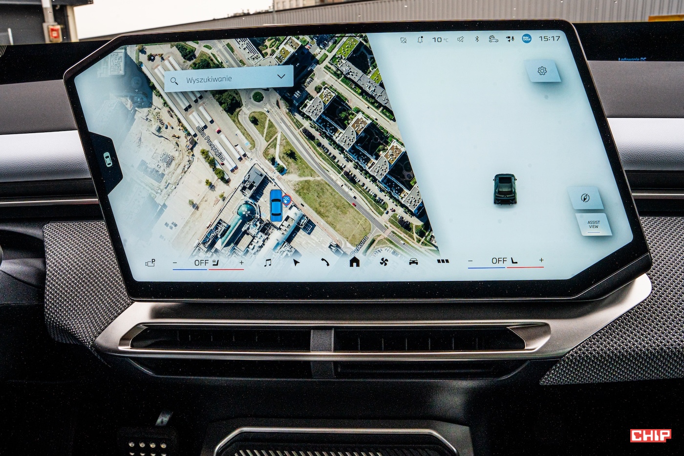 Przez niestandardowy kształt wyświetlacza pojawia się co prawda jeden, mały „problem” — i coś, z czym kierowcy MINI muszą żyć na co dzień. Mianowicie, Apple CarPlay czy Android Auto nie wpasowują się w ten wyświetlacz idealnie, tylko są zablurowane ramki po bokach i trzeba zaakceptować ten kompromis. Nie jest to tak bolesne, jak właśnie w MINI z okrągłymi ekranami — bo samo okno z klonowaniem ekranu smartfona nie robi się drastycznie mniejsze w porównaniu do całej powierzchni ekranu, ale jednak nie zlewa się to perfekcyjnie. Jest to jednak raczej kwestia nie do obejścia, więc trudno za to winić BMW — a i przecież nawigacja systemowa, jak i cały OS są w tym aucie tak dobrze zrobione, że CarPlay wcale nie jest smutną koniecznością, a najwyżej dodatkiem, na który decydujemy się z przyzwyczajenia.