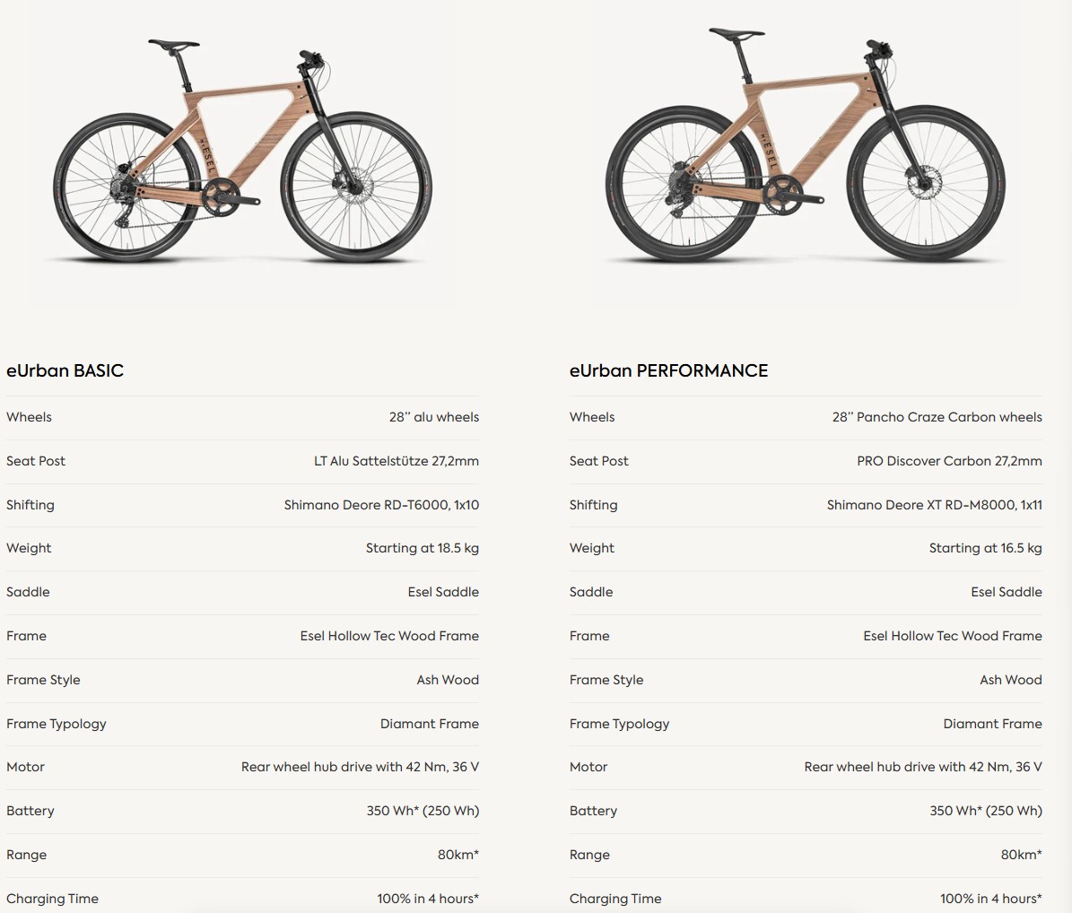 Za firmą Esel stoi Christoph Fraundorfer, a więc architekt, który według oficjalnej historii firmy zaczął projektować własne rowery dlatego, że przy wzroście 1,95 metra nie mógł znaleźć modelu dobrze dopasowanego do swojej sylwetki. W ciekawy więc sposób przeszedł z tych celów do opracowania roweru eUrban, którego rama przyjmuje formę pustej w środku konstrukcji Hollow Tec, obrabianej CNC i budowanej warstwowo jako kompozyt drewniany, z jesionowym wykończeniem i naciskiem na tłumienie drobnych drgań. Producent podkreśla też jej odporność na deszcz, wilgoć i promieniowanie UV dzięki wielowarstwowej powłoce ochronnej.