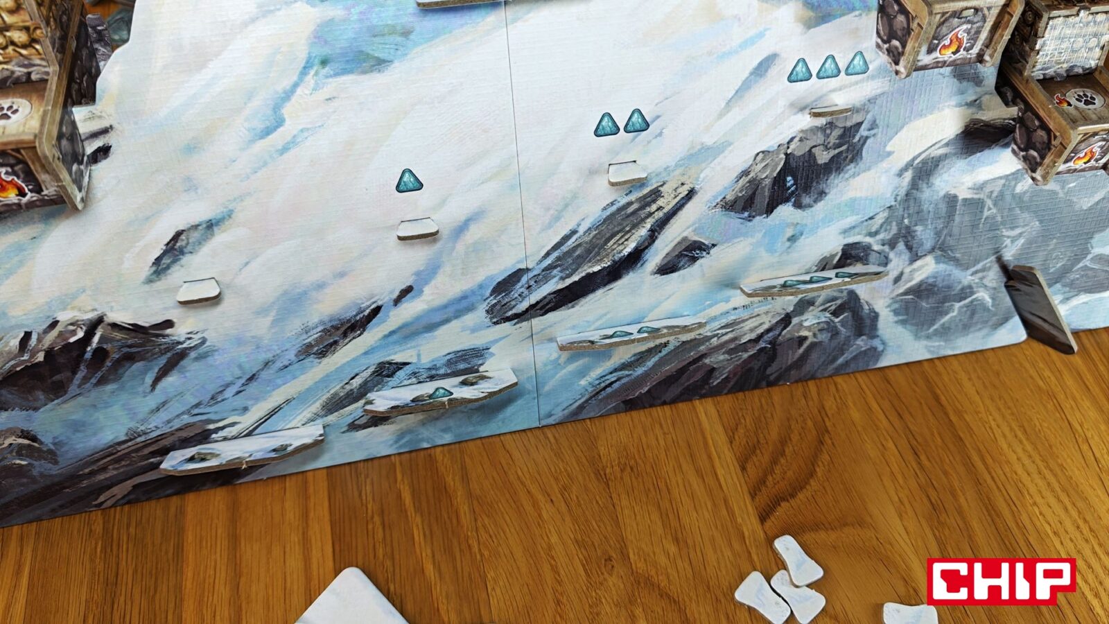 W przypadku Srebrnoszronów doceniam więc obecność mniejszej alternatywy. Wielka góra jest efektowna i nie aż tak przesadzona w stosunku do swoich możliwości (umieszczamy na niej karty sygnałowe, wolne zasoby śniegu oraz wielkie zwierzęta), ale nie zawsze praktyczna. Zajmuje miejsce, potrafi utrudniać widoczność i przy większym stole zwyczajnie nie każdemu będzie wygodnie z niej korzystać. Mniejszy wariant nie robi takiego wrażenia, ale podczas samej rozgrywki bywa po prostu lepszy.