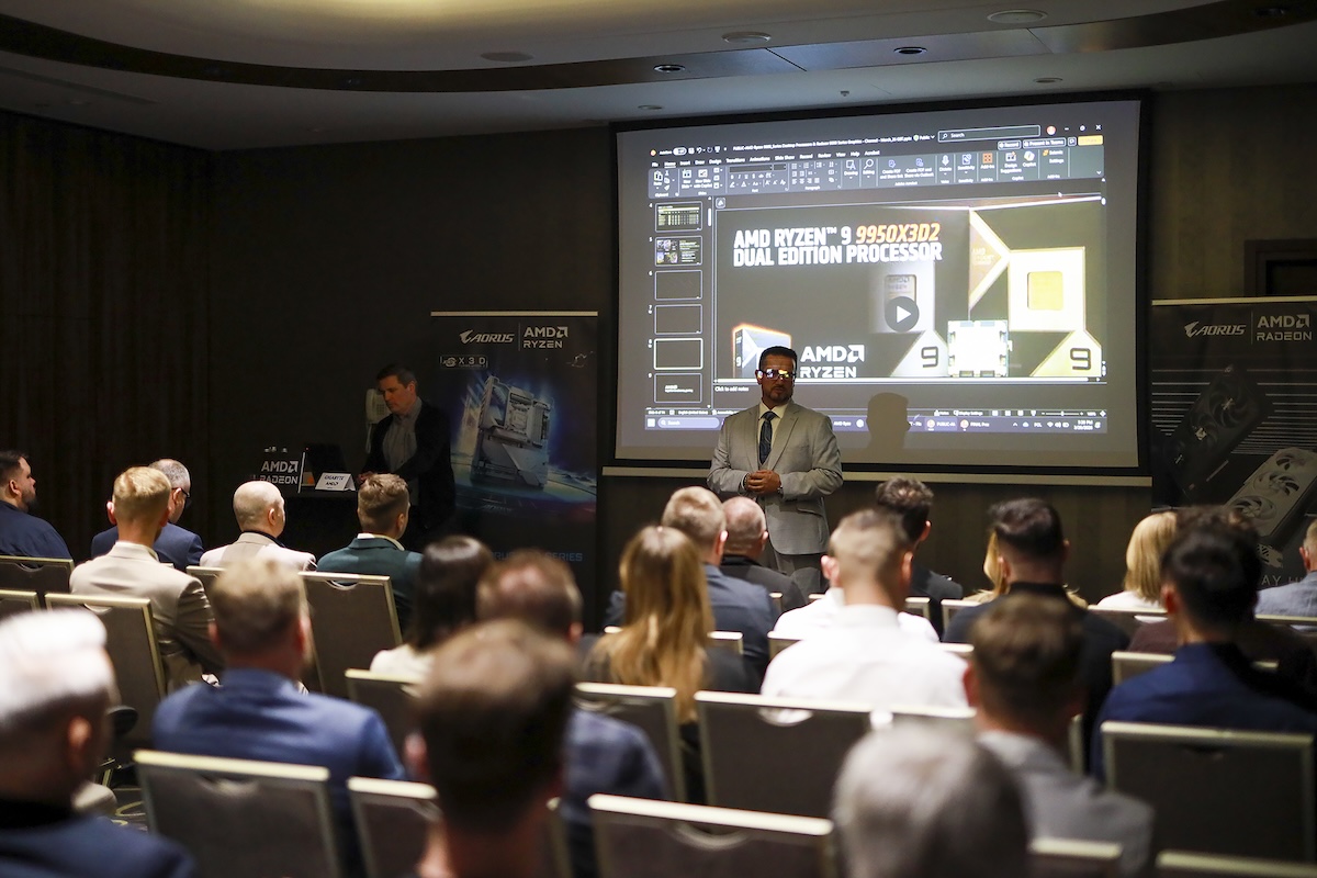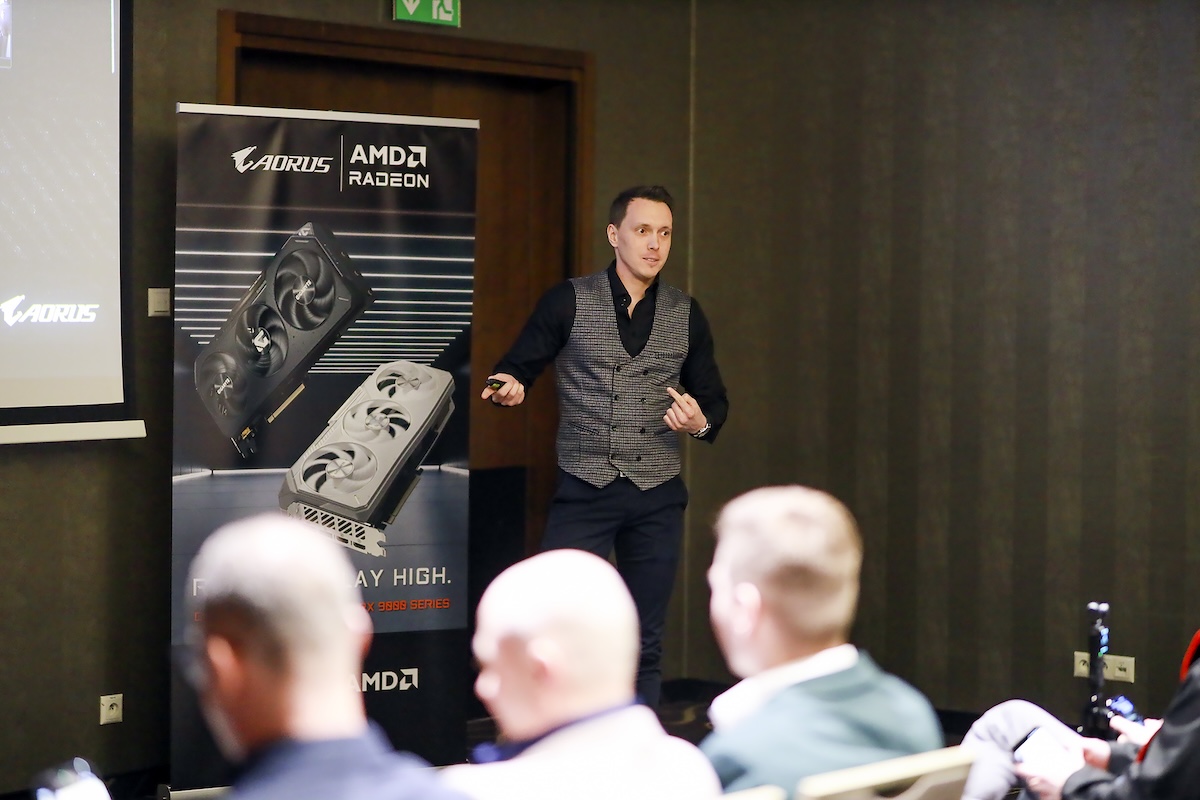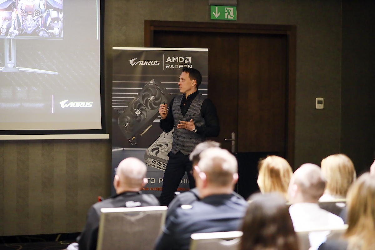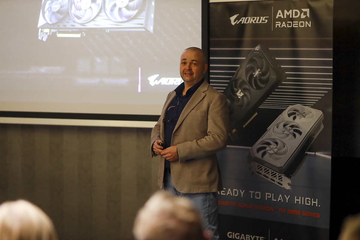 Kolejnym ważnym elementem konferencji były karty graficzne. GIGABYTE podkreśla, że Polska od lat pozostaje jednym z najważniejszych rynków firmy w Europie, co znajduje odbicie w wynikach sprzedaży i obecności w kanałach dystrybucyjnych. Marka mówi wprost o umacnianiu swojej pozycji w segmencie VGA i rozwijaniu oferty opartej na układach AMD Radeon.