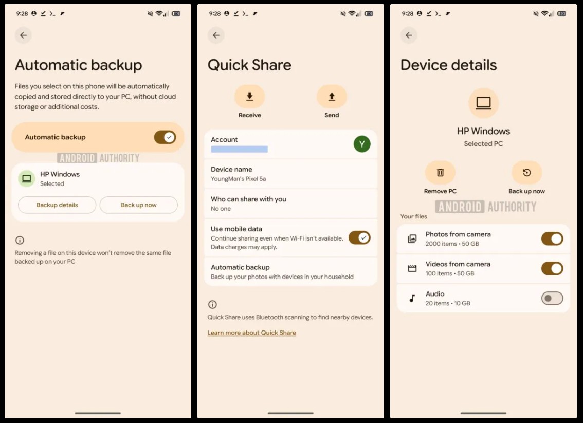 Odkryta w wersji beta usług Google Play (v26.15.31) funkcja „Automatic backup” to rozszerzenie dobrze znanego systemu Quick Share (dawniej Nearby Share). Zamiast wysyłać nasze prywatne zdjęcia na serwery Google, system po prostu skopiuje je bezpośrednio na nasz domowy komputer PC. Cały proces ma odbywać się w tle, bez konieczności podpinania kabli i bez angażowania połączenia internetowego, wykorzystując lokalną sieć Wi-Fi oraz Bluetooth.