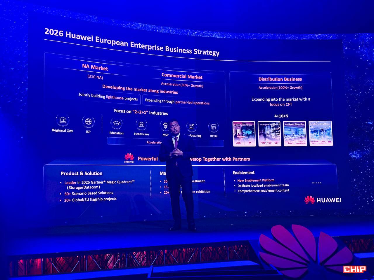 Drugim istotnym wątkiem była działalność dystrybucyjna rozwijana w oparciu o strategię eKit 4+10+N. Huawei wiąże ją ze ścisłą współpracą z partnerami typu CFT, czyli tymi będącymi bliżej klienta końcowego. To kolejny element przesuwania ciężaru z centralnego modelu sprzedaży na bardziej rozproszony, lokalny i praktyczny system działania. W świecie małych i średnich wdrożeń szybkość, prostota i dostęp do partnera często decydują o tym, czy technologia w ogóle zostanie kupiona. Duże przedsiębiorstwa mogą prowadzić wielomiesięczne procesy zakupowe, a mniejsze organizacje zwykle potrzebują konkretnej odpowiedzi, sensownej konfiguracji i jasnej ścieżki wdrożenia. Jeśli Huawei chce rosnąć nie tylko w największych projektach, ale też szerzej w europejskiej gospodarce, dystrybucja i partnerzy bliżej klienta będą kluczowi.