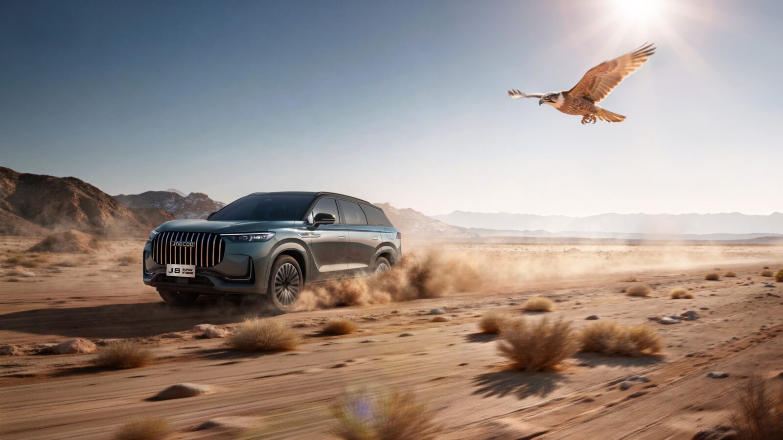 Wnętrze JAECOO 8 Super Hybrid wyraźnie celuje w segment premium, rezygnując z kompromisów typowych dla tańszych marek. W kabinie dominują dwa horyzontalne ekrany, które współpracują z wyświetlaczem HUD (Heads-Up Display) korzystającym z technologii rozszerzonej rzeczywistości. Kierowca widzi ostrzeżenia systemów ADAS i nawigację nałożoną bezpośrednio na widok drogi, co znacznie podnosi bezpieczeństwo.