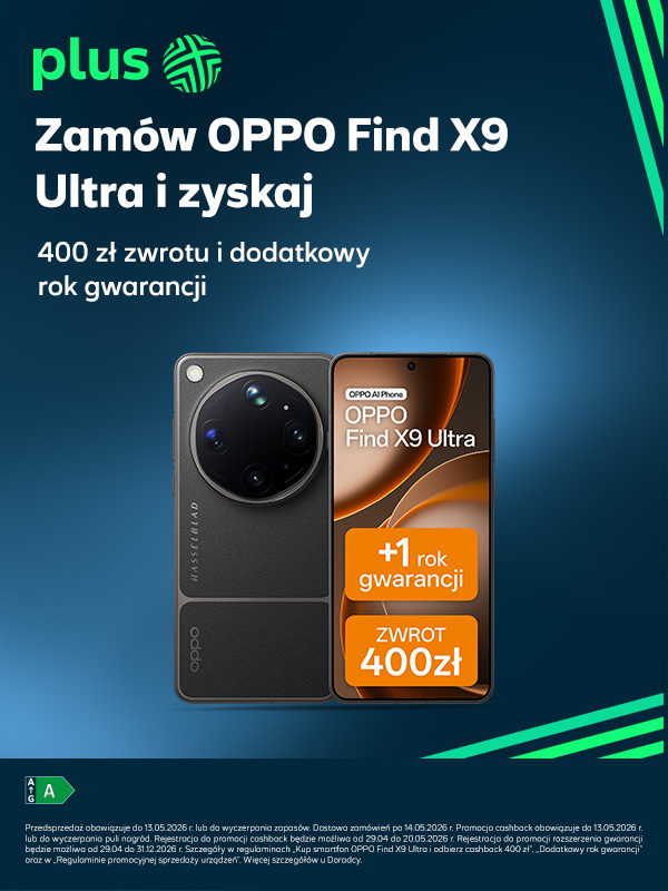 - OPPO Find X9 Ultra 5G (12/512GB) został wyceniony na 7399 zł (również w systemie 12 rat). W tym przypadku, do naszej kieszeni może wrócić 400 zł zwrotu po spełnieniu warunków rejestracji.