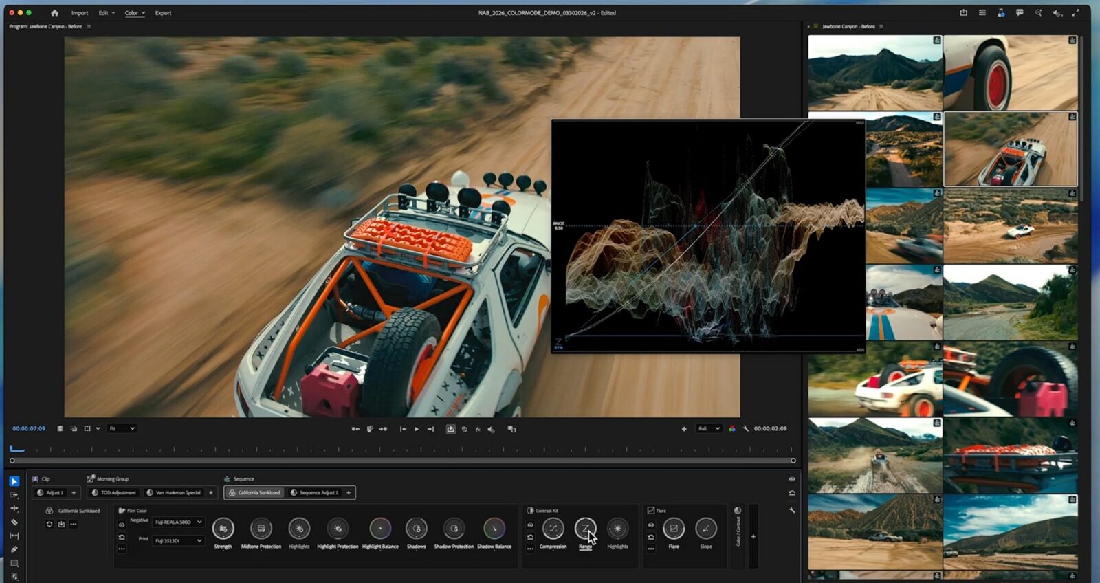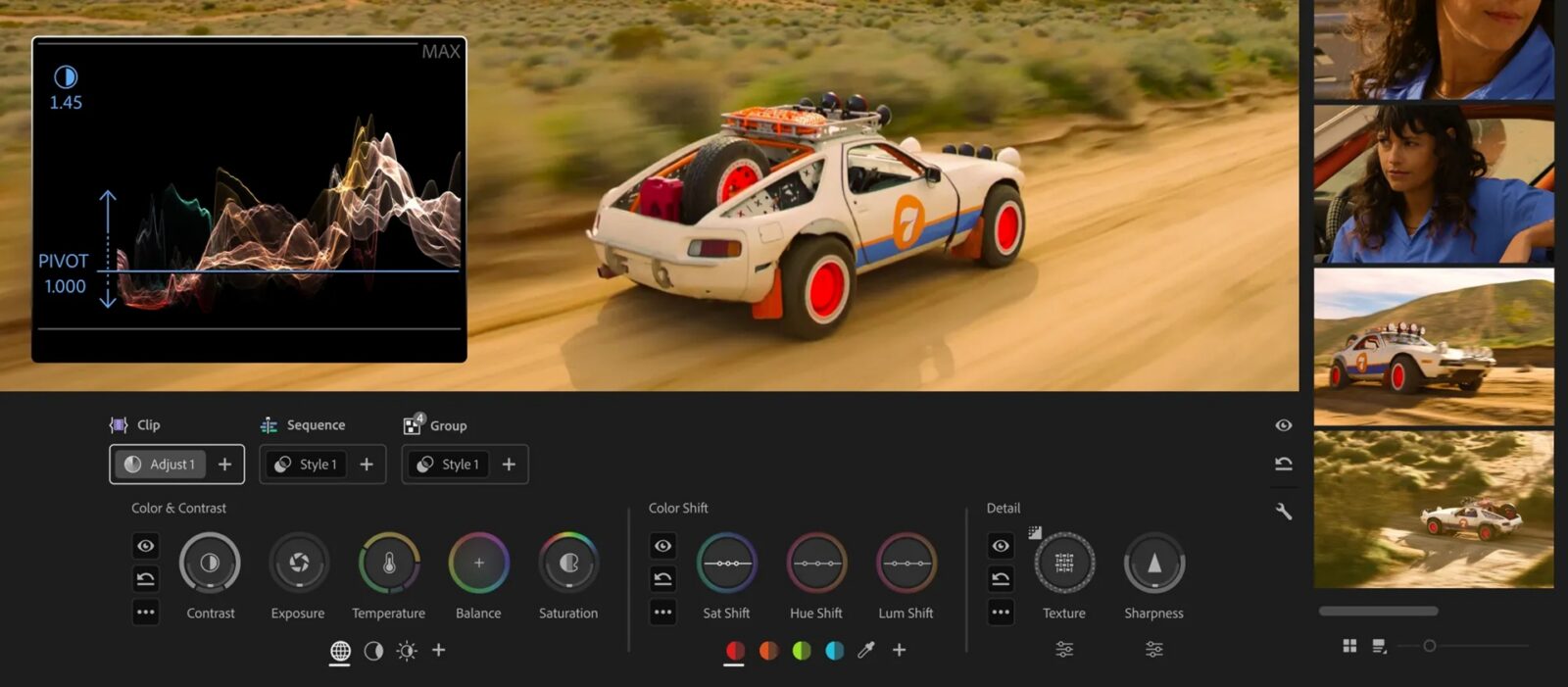 Zacznijmy od tego Adobe przebudowało pracę z kolorem w Premiere Pro poprzez przygotowanie w ramach trybu Color Mode nowego interfejsu o nazwie Clip Grid. Ten pozwala szybko przeglądać i grupować klipy w sekwencji, dzięki czemu ma być łatwiej pilnować spójności między ujęciami. Do tego dochodzi praca na sześciu strefach luminancji zamiast prostego podziału na cienie, półcienie i światła, a także 32-bitowa precyzja koloru, która ma ograniczać clipping i utratę informacji przy mocniejszych korektach. Firma zaznacza przy tym, że rozwiązanie powstawało we współpracy z setkami montażystów testujących je wcześniej prywatnie, a jej pełna premiera nastąpi jeszcze w tym roku.