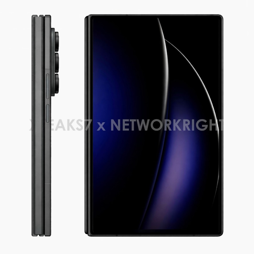 Konstrukcja opiera się na dwóch zawiasach i trzech panelach, które po złożeniu tworzą „kanapkę”. Jeden z segmentów pozostaje widoczny na zewnątrz, pełniąc rolę głównego wyświetlacza okładkowego (też widocznie szerszego niż to, co znamy), podczas gdy na rewersie umieszczono system trzech aparatów. Co ciekawe, ramka urządzenia na szkicach wydaje się celowo grubsza i solidniejsza. To logiczne rozwiązanie – obsługa dwóch zawiasów i trzech tafli ekranu wymaga potężnej konstrukcji, która wytrzyma tysiące cykli składania bez uszczerbku dla mechanizmu.