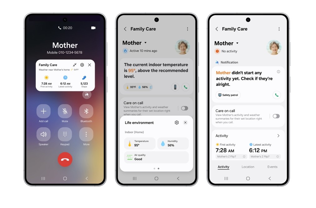 Samsung poszedł jednak o krok dalej, angażując do opieki… roboty sprzątające. Funkcja Safety Patrol pozwala zdalnie wysłać robota Bespoke AI Jet Bot Steam Ultra na zwiad. Urządzenie, korzystając z wbudowanej kamery i mikrofonu, może sprawdzić, czy senior nie upadł lub nie potrzebuje pomocy. Co więcej, przez głośnik robota można przeprowadzić dwukierunkową rozmowę, co w sytuacjach stresowych może być kluczowe. Opiekun ma też stały podgląd na temperaturę i jakość powietrza w domu bliskich, mogąc zdalnie uruchomić klimatyzator czy oczyszczacz, jeśli parametry odbiegną od normy.