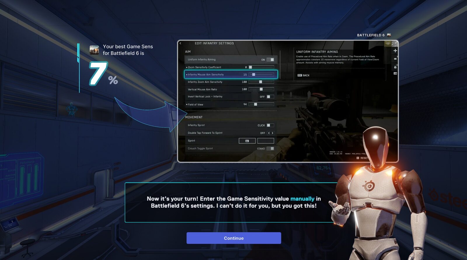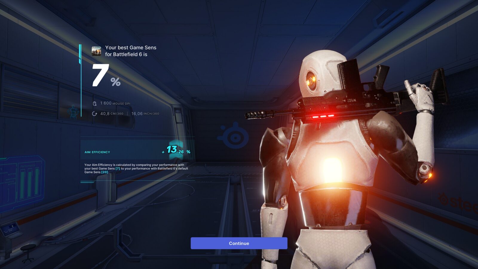 Ewidentnie zbyt dużo czasu spędziłem z kolei w nowym narzędziu SteelSeries, które pozwala znaleźć idealny poziom czułości w konkretnych grach na podstawie tego, jak pójdzie nam w teście podzielonym na 8 rund i kilka etapów strzelania w cele na różnej odległości.