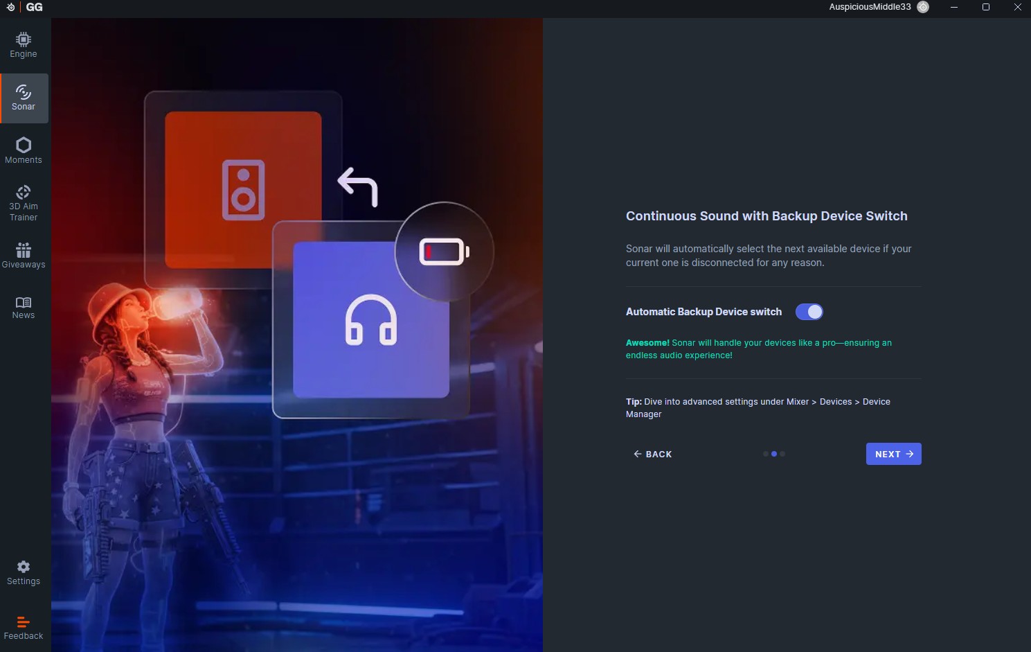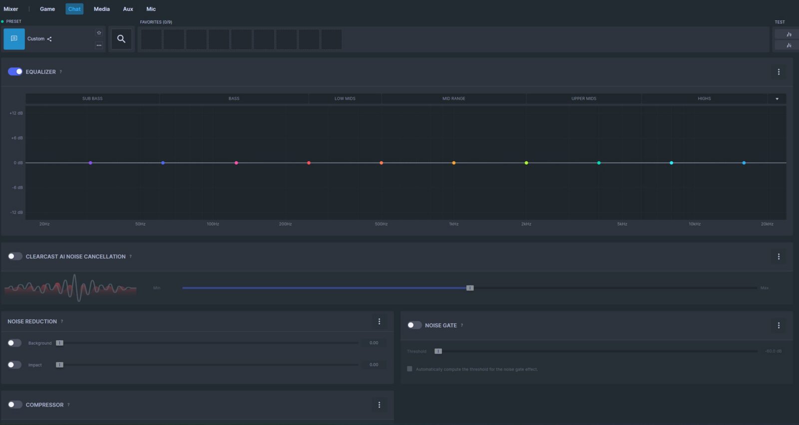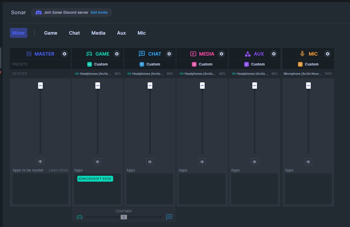 Oprogramowanie SteelSeries GG dostępne na komputery (działa tylko po wpięciu stacji w USB-1) jest bardzo rozbudowane, ma w sobie możliwość dostosowywania wielu szczegółów co do tego, jak Arctis Nova Elite zachowują się na co dzień. Ubóstwiam opcję dzielenia źródeł dźwięku na “grę i chat”, wyłączania ekranu stacji przy bezczynności w celu ochrony panelu OLED, a przede wszystkim specjalny mikser Sonar. Ten służy za centrum do dostosowywania charakteru brzmienia tego modelu za sprawą szeregu predefiniowanych profili z opcją tworzenia swoich niestandardowych i rozdzielenia charakteru na połączenie radiowe i Bluetooth.