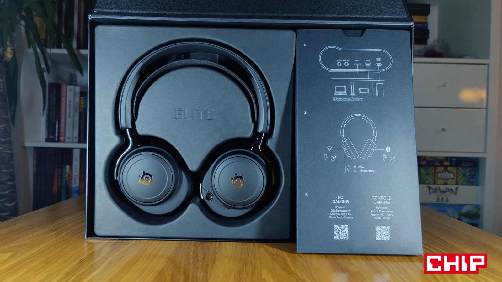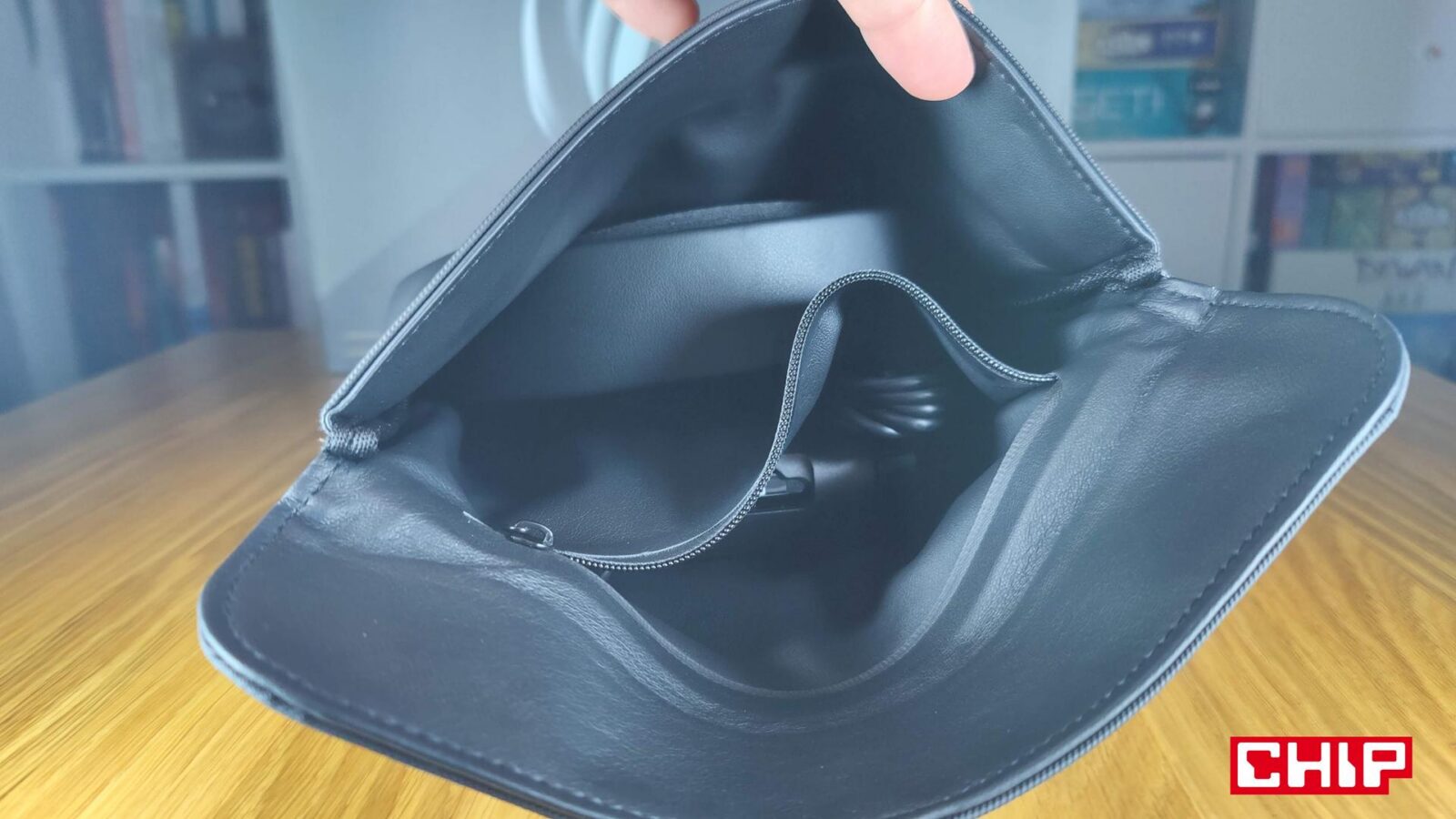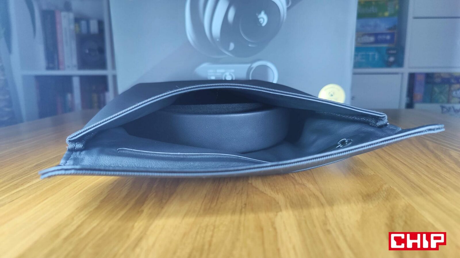 Nie będę ukrywał, że Arctis Nova Elite rozczarowały mnie tym, jak wyglądają. Widzę w nich po prostu sprzęt, który testowałem przed kilkoma laty i nie dostrzegam wystarczająco dużo elitarnego sznytu w wykończeniu. Nawet mimo tego, że firma rozwiązała problem irytującej diody sygnalizującej wyciszenie mikrofonu, która w nowym modelu gaśnie automatycznie po wsunięciu wysięgnika do muszli. Nie przekonuje mnie jednak dodatek skórzanej torby transportowej w pudełku, bo ze względu na brak jakichkolwiek usztywnień, bardziej niż w transporcie przydaje się ona do przechowywania popfiltra na mikrofon, łącznie trzech 1,5-metrowych przewodów USB-C do USB-A i jednego przewodu jack 3,5 mm do pracy przewodowej.