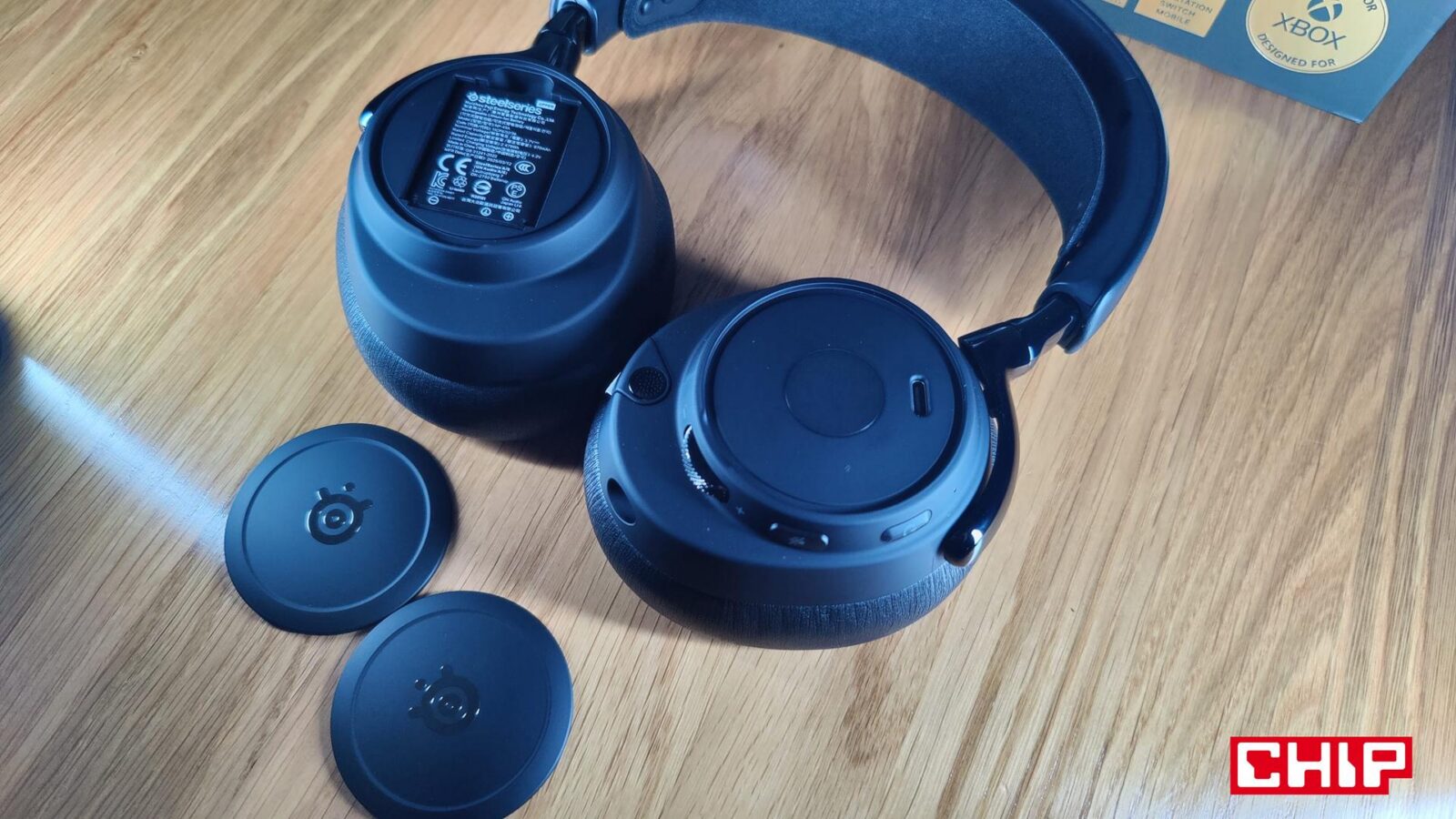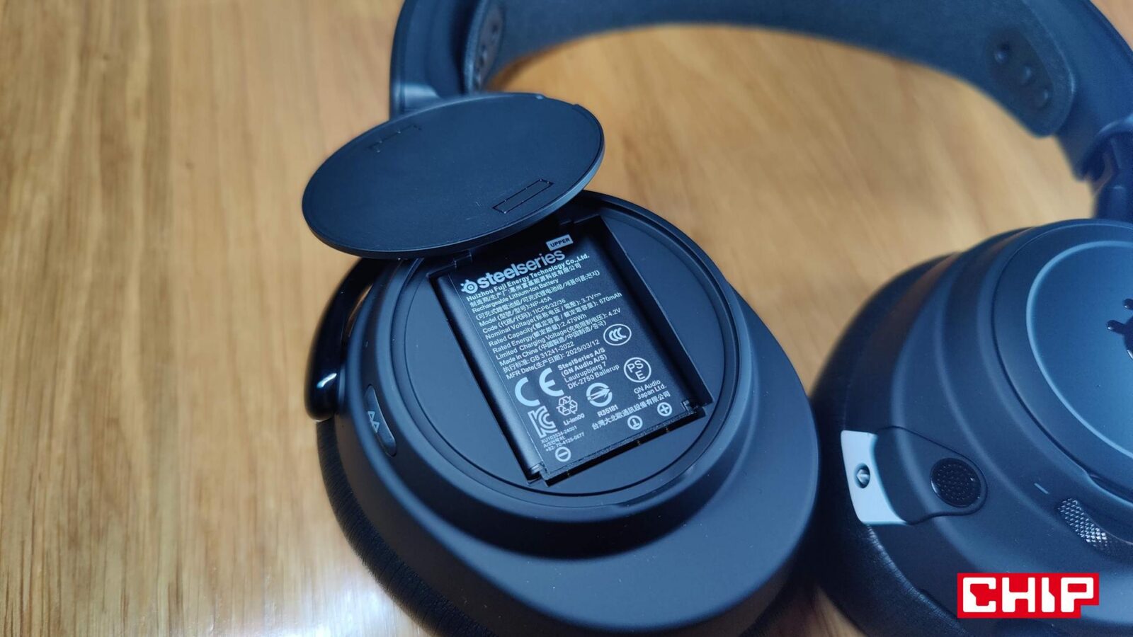 SteelSeries na szczęście zachowało również wyjątkowy system zasilania, który opiera się na dwóch wymiennych akumulatorach. Jeden ląduje w stacji ładującej, drugi w słuchawkach, a żonglerka nimi robi swoje. Względem poprzedniego modelu te akumulatory mają wytrzymywać dłużej, a tutaj akurat zostałem pozytywnie zaskoczony, bo jeden z nich wystarczał mi nie na jeden, a na całe dwa dni pracy przy regularnym korzystaniu z ANC, a co najważniejsze, nieustannym podtrzymywaniu połączenia radiowego na najwyższej jakości (PC) oraz Bluetooth (Steam Deck i smartfon). Dla ciekawych – w takim scenariuszu akumulator traci około 7-8% co dwie godziny, a to przekłada się na od około 25 do 30 godzin odsłuchu na jednym tylko akumulatorze, którego ładowanie od 0 do 80% trwa około 90 minut.