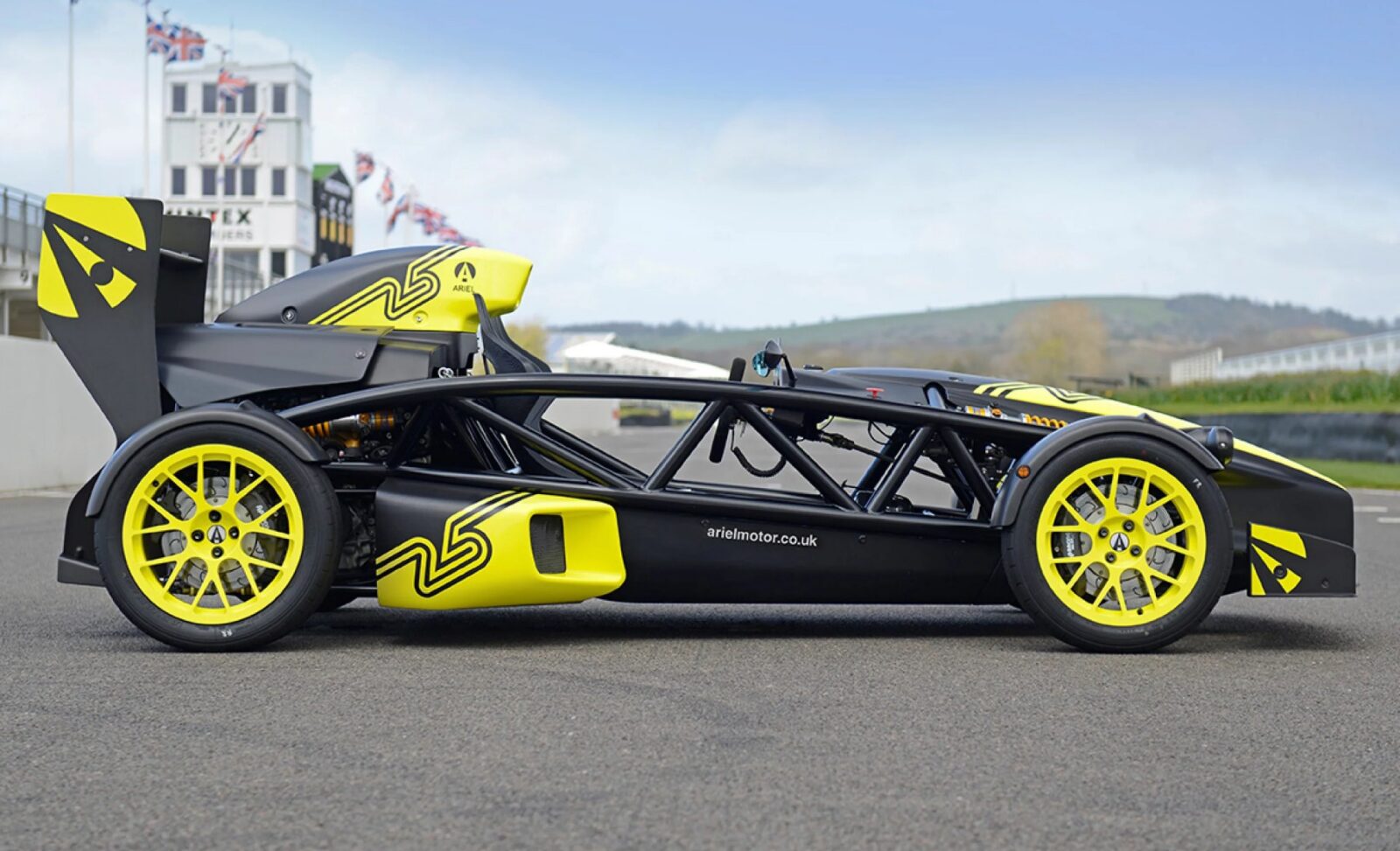 Widać to zresztą w całej specyfikacji. Zdradza to sześciobiegowa sekwencyjna skrzynia Quaife z łopatkami, pełny tytanowy wydech, zawieszenie Ohlinsa, wentylowane tarcze 310 mm, elementy aero z włókna węglowego, opony drogowe Yokohama A052 i możliwość dalszego “podkręcenia” auta opcjami pokroju motorsportowej klatki czy nawet pokładowych podnośników pneumatycznych. Kokpit nie udaje luksusu. Ariel stawia na funkcję, lap timery i torowe metryki. Nawet jeśli producent zostawia kierowcy miejsce na “drogowe” użytkowanie, to jest to raczej droga jako etap między garażem a nitką toru.