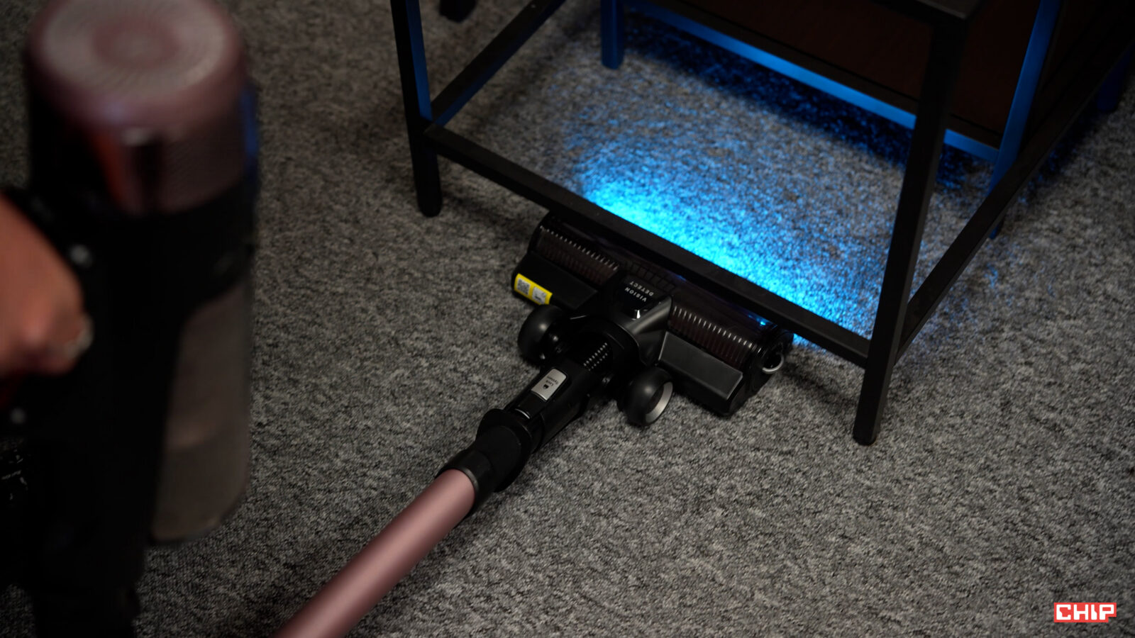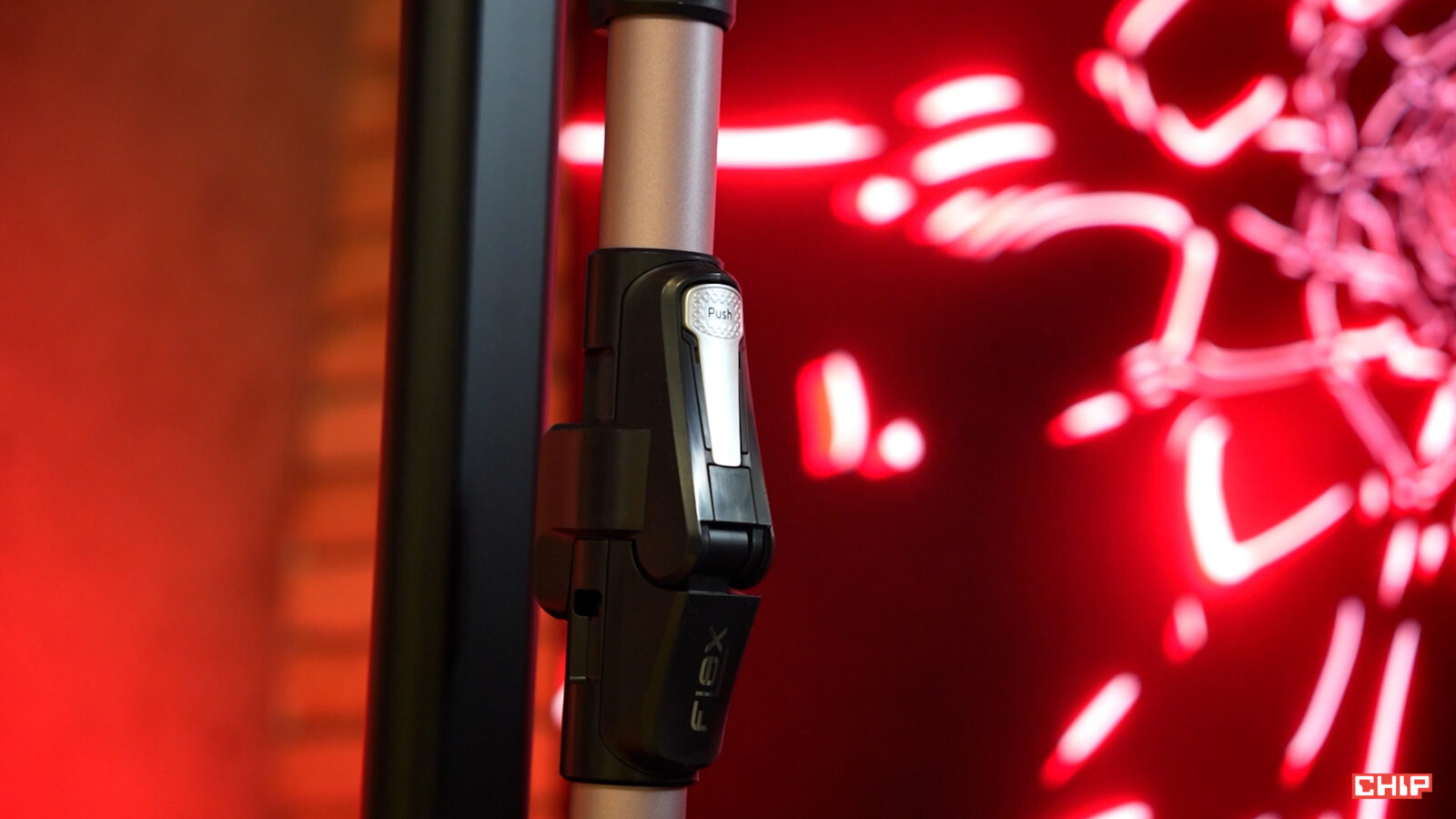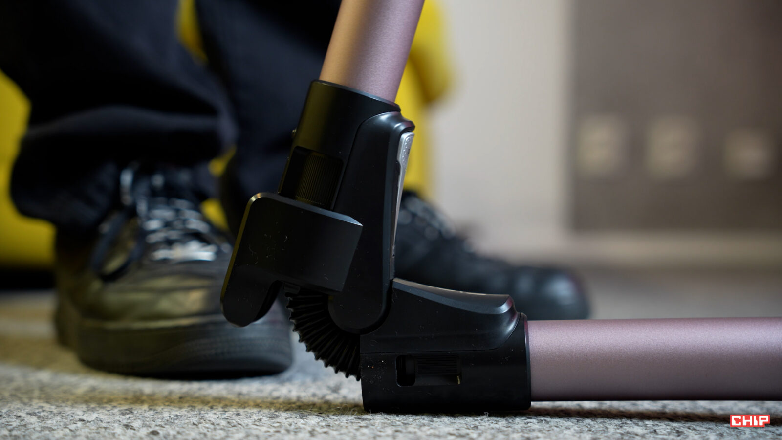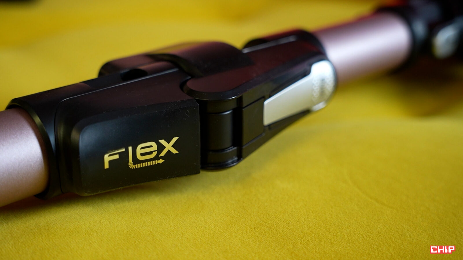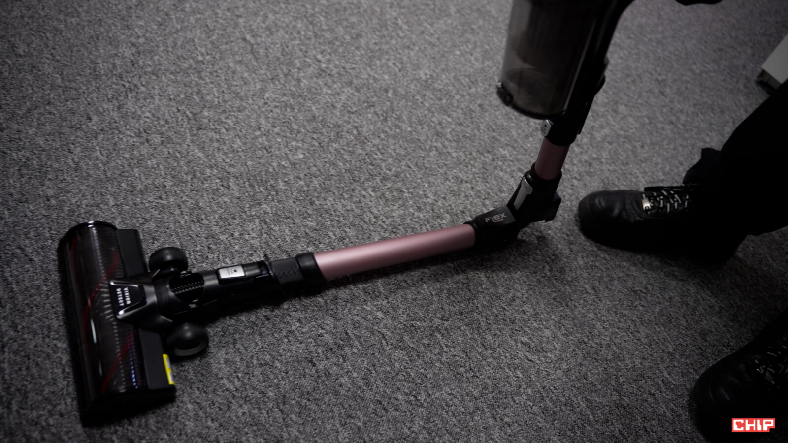 Flex najlepiej pokazuje, o co chodzi w tym modelu. To nie jest funkcja po to, żeby robić efekt na papierze, tylko po to, żeby uprościć najbardziej niewygodny etap sprzątania. W wielu domach problemem nie jest samo odkurzanie, tylko wszystko dookoła niego — schylanie się, kucanie, próby dotarcia w niskie przestrzenie i ciągłe przerywanie pracy, bo w pewnym momencie zaczyna się walka z ergonomią.