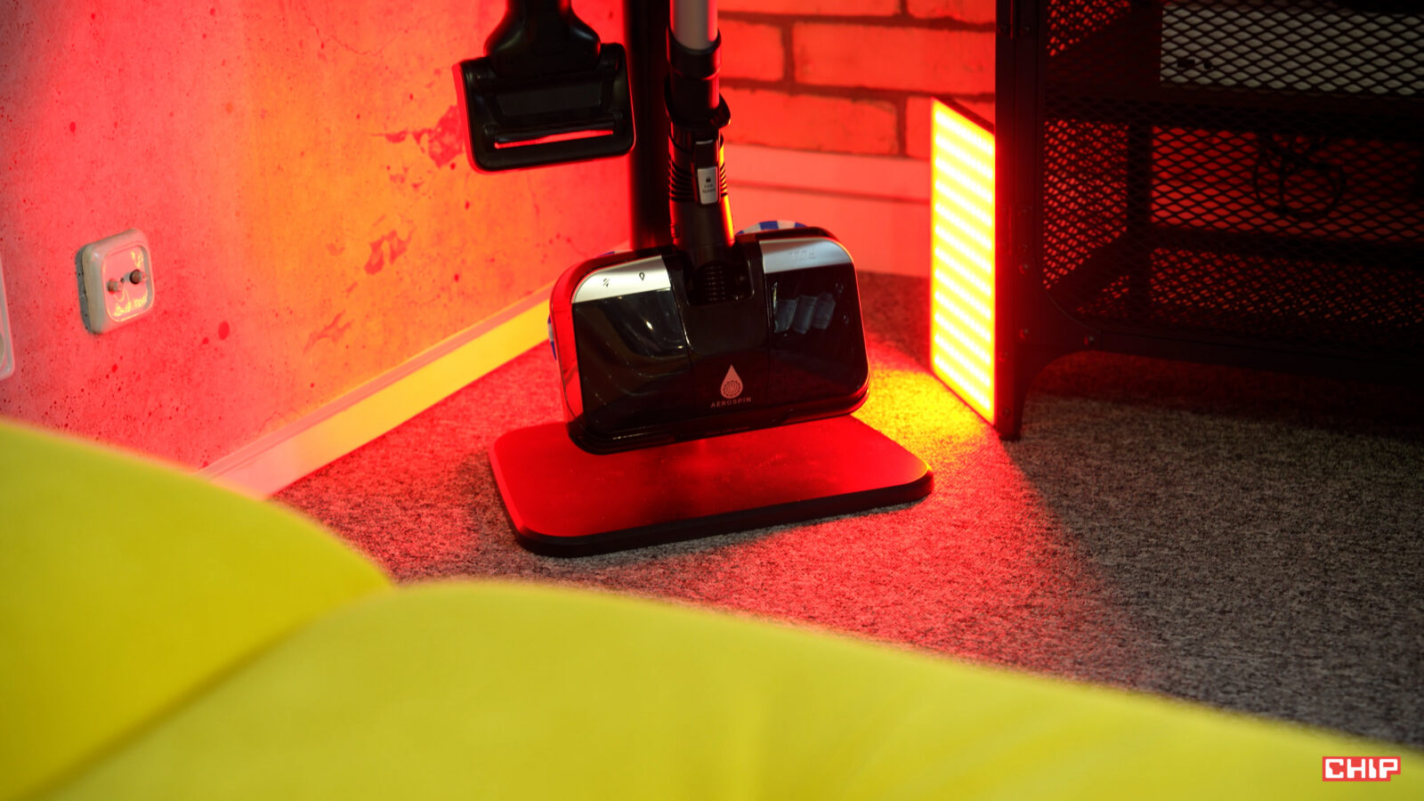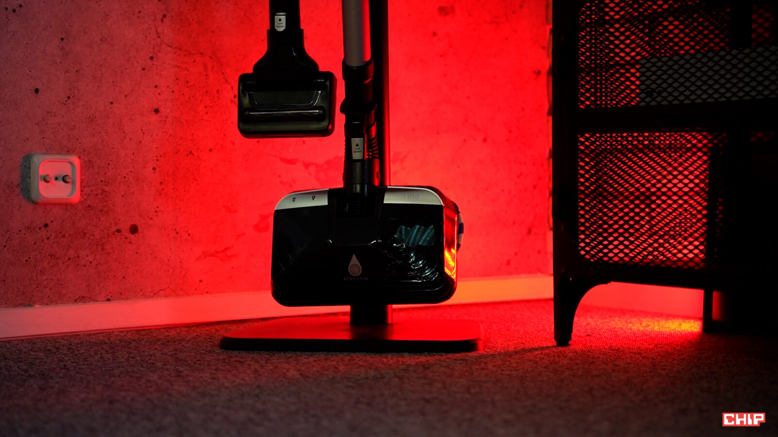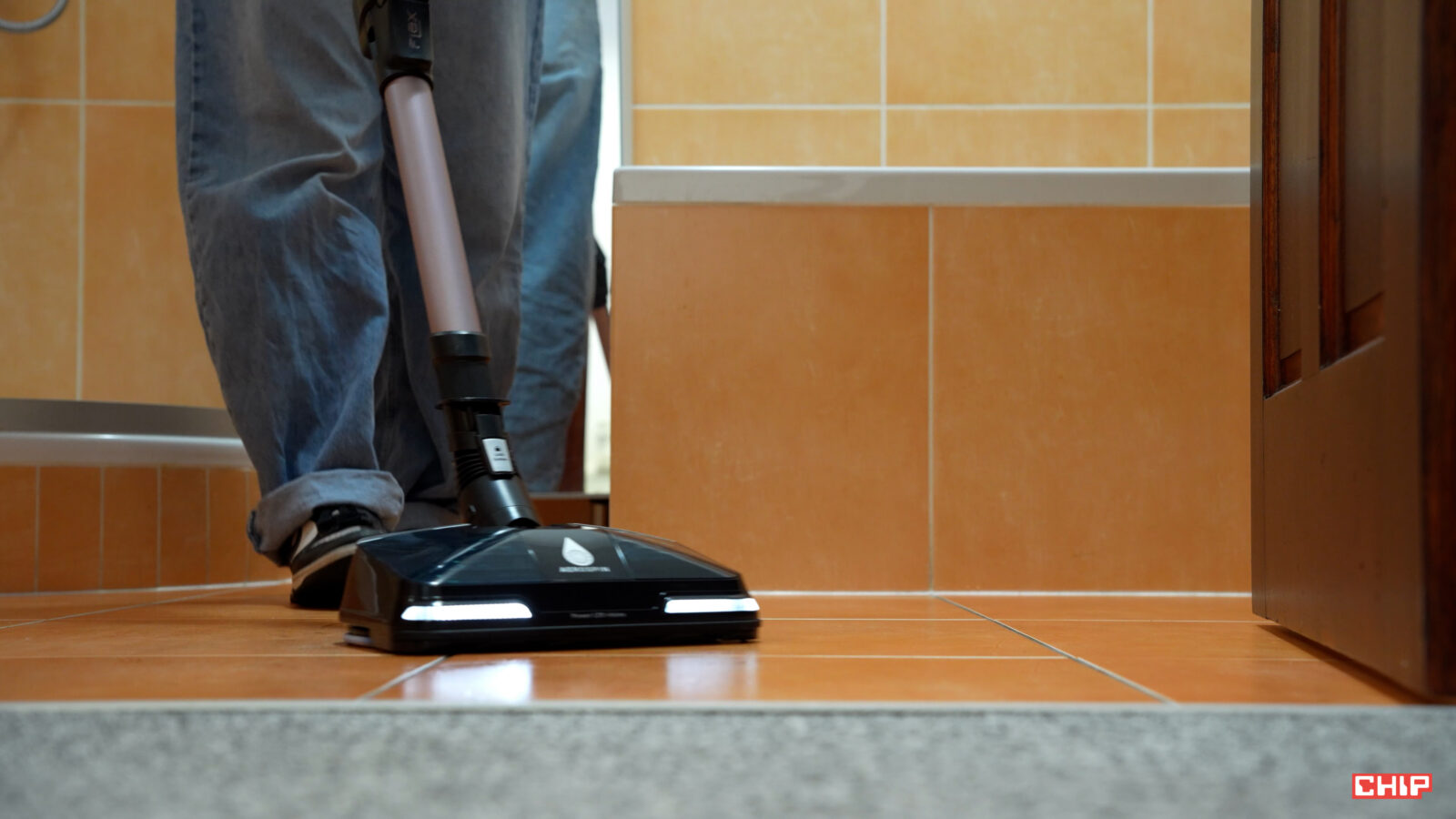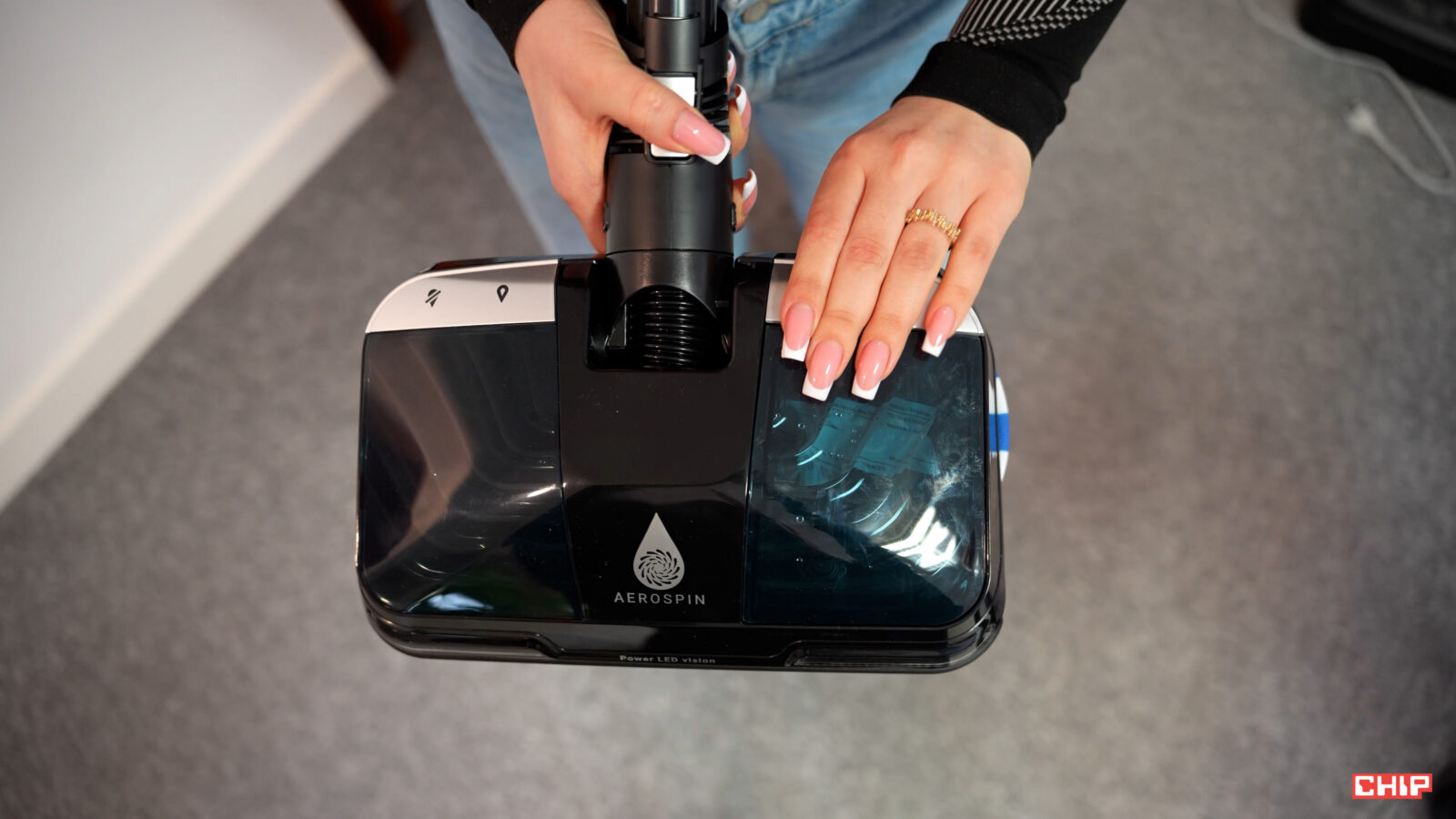 To bezprzewodowy odkurzacz zaprojektowany tak, by stał pod ręką i zachęcał do częstszego sprzątania, bo całe wejście w tę czynność jest krótsze i wygodniejsze. W tym modelu producent podkreśla kilka rozwiązań — moc ssania do 315 Air Wattów, tryb Auto dopasowujący pracę urządzenia do warunków, zginaną rurę Flex, szczotkę Neo z podświetleniem LED i technologię ograniczającą plątanie włosów, a także głowicę Aerospin Aqua Head, która łączy odkurzanie z odświeżaniem podłogi na mokro. Ale po kolei.