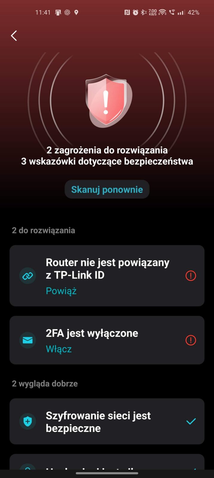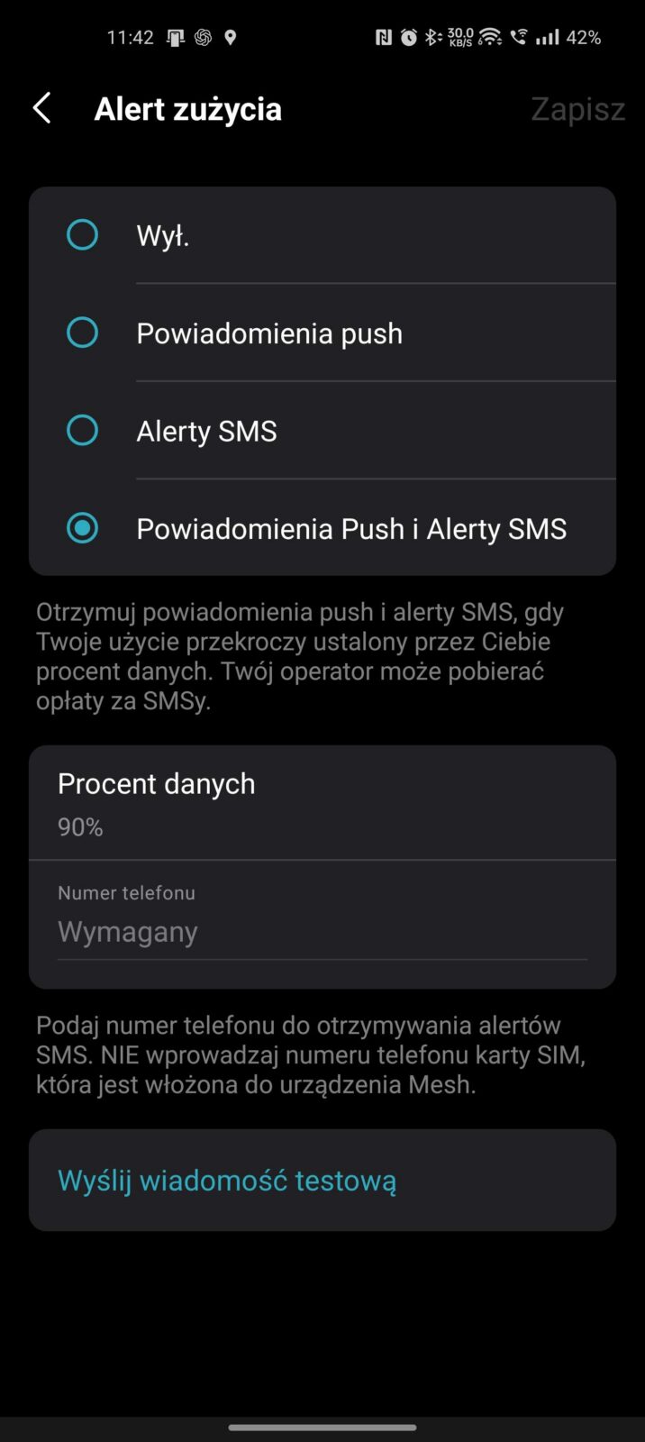 TP-Link M8550 obsługuje też szyfrowanie (wsparcie WPA3), odbieranie wiadomości SMS, ustawianie limitów danych, monitorowanie transferu, konfigurację z poziomu ekranu, aplikacji TP-Link Tether do instalacji na telefonie lub panelu WWW, a do tego funkcję WPS, USB tethering, tryb access point, VPN server i VPN client. Co ciekawe, nie znajdziemy w nim opcji ustawienia routera w tryb repeatera, co można uznać za spory brak, choć tylko w konkretnych konfiguracjach sieciowych. Warto też zauważyć, że między interfejsami jest pewna różnica, bo np. nie możemy ustawić wysokiej mocy Wi-Fi z poziomu ekranu routera bez wyciągnięcia akumulator, ale z aplikacji mobilnej już tak.