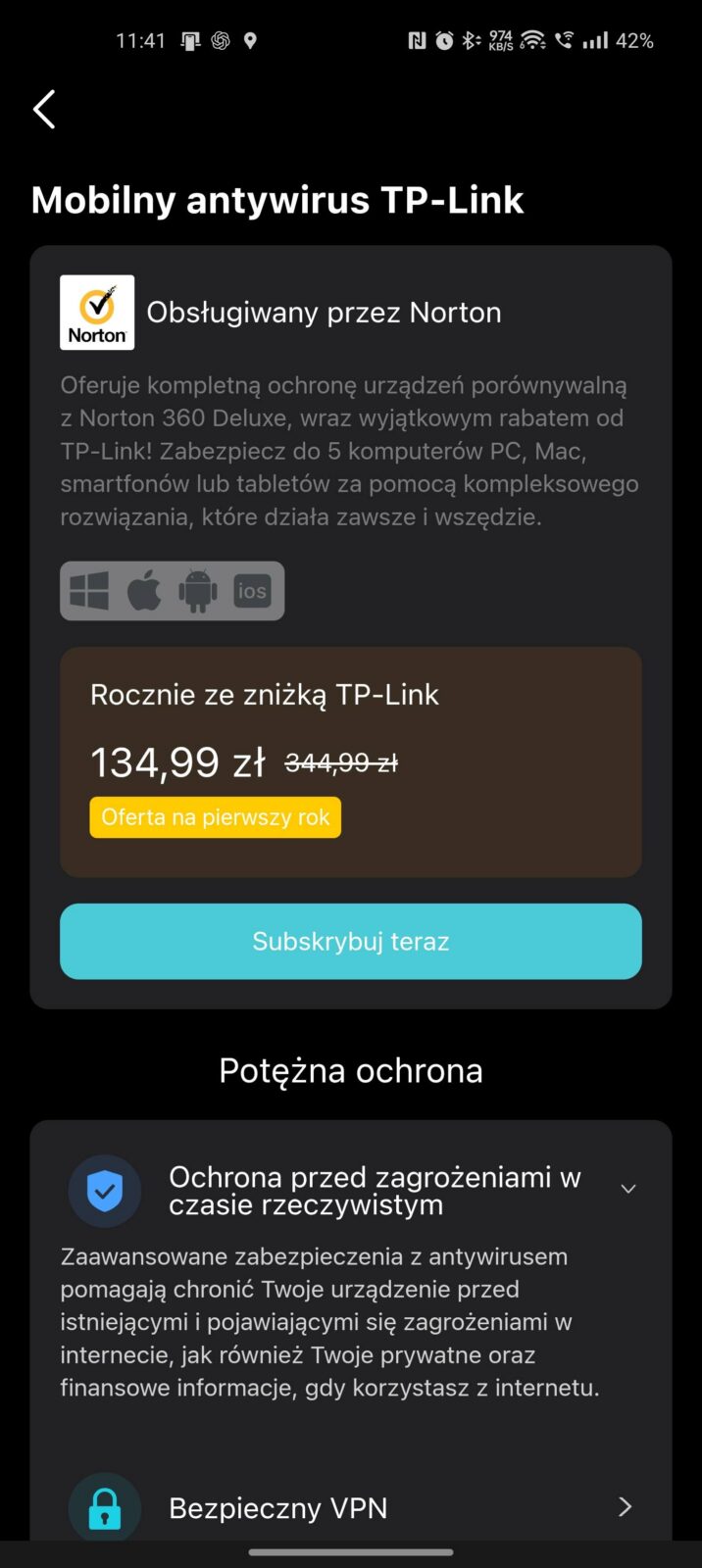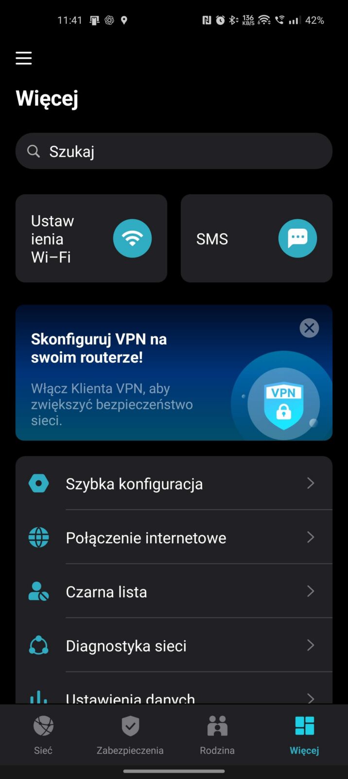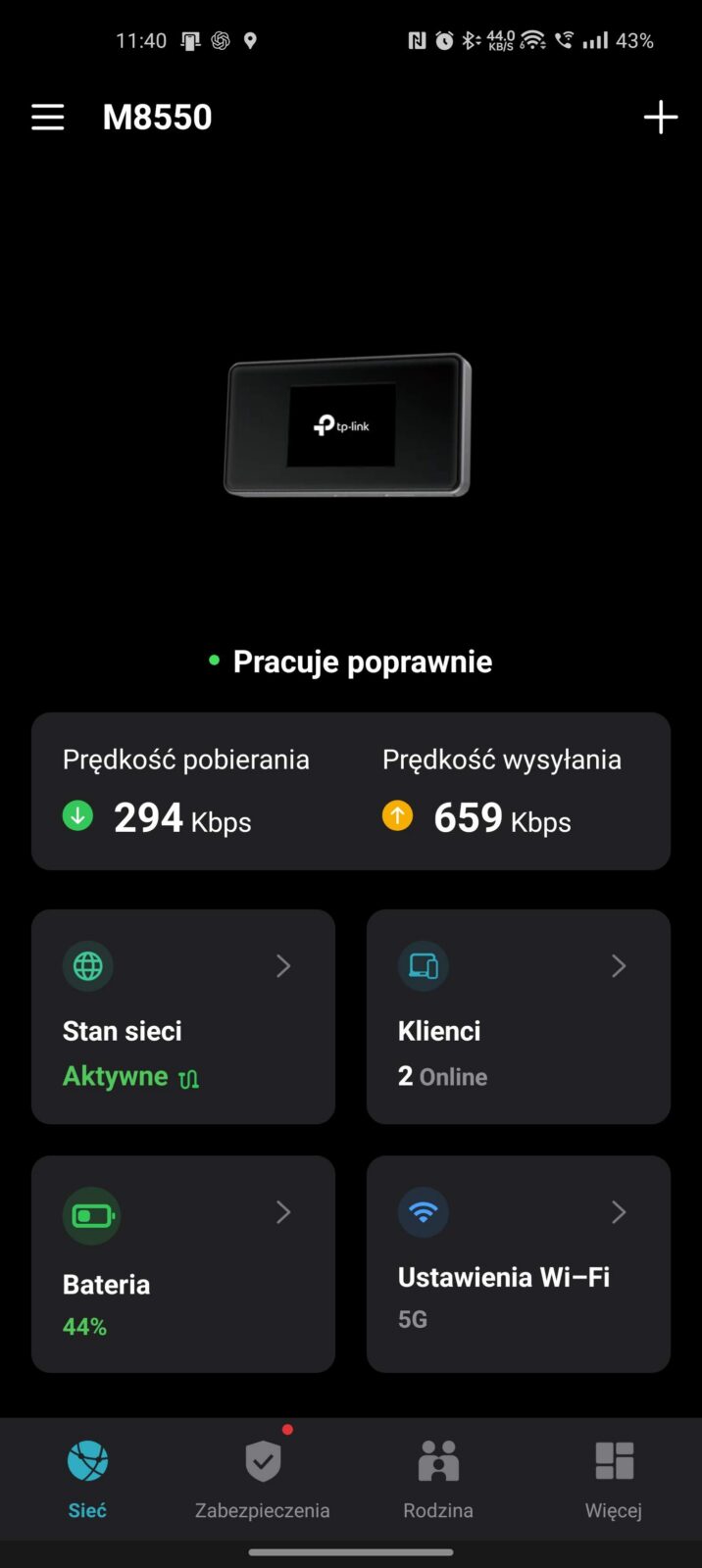 Ciekawie wypada również temat bezpieczeństwa. TP-Link akcentuje obecność WireGuard VPN jako narzędzia dla osób pracujących w ruchu i chcących korzystać z bezpiecznego połączenia do firmowych zasobów bez konfiguracji na każdym urządzeniu z osobna. To akurat bardzo dobrze pasuje do charakteru M8550, bo przecież ten router ma służyć do pracy poza domem, w podróży i wszędzie tam, gdzie publiczne Wi-Fi nie powinno być pierwszym wyborem.