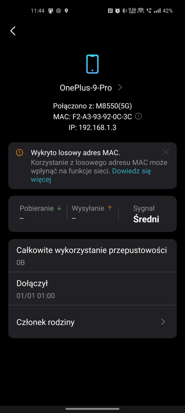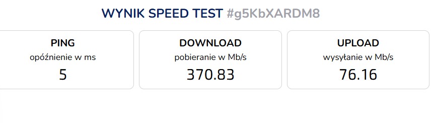 Jeśli jednak w tym samym miejscu postawię router M8550 i usiądę obok z telefonem wpiętym w sieć 5G, to pomiary prezentują się następująco:
