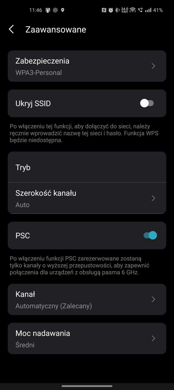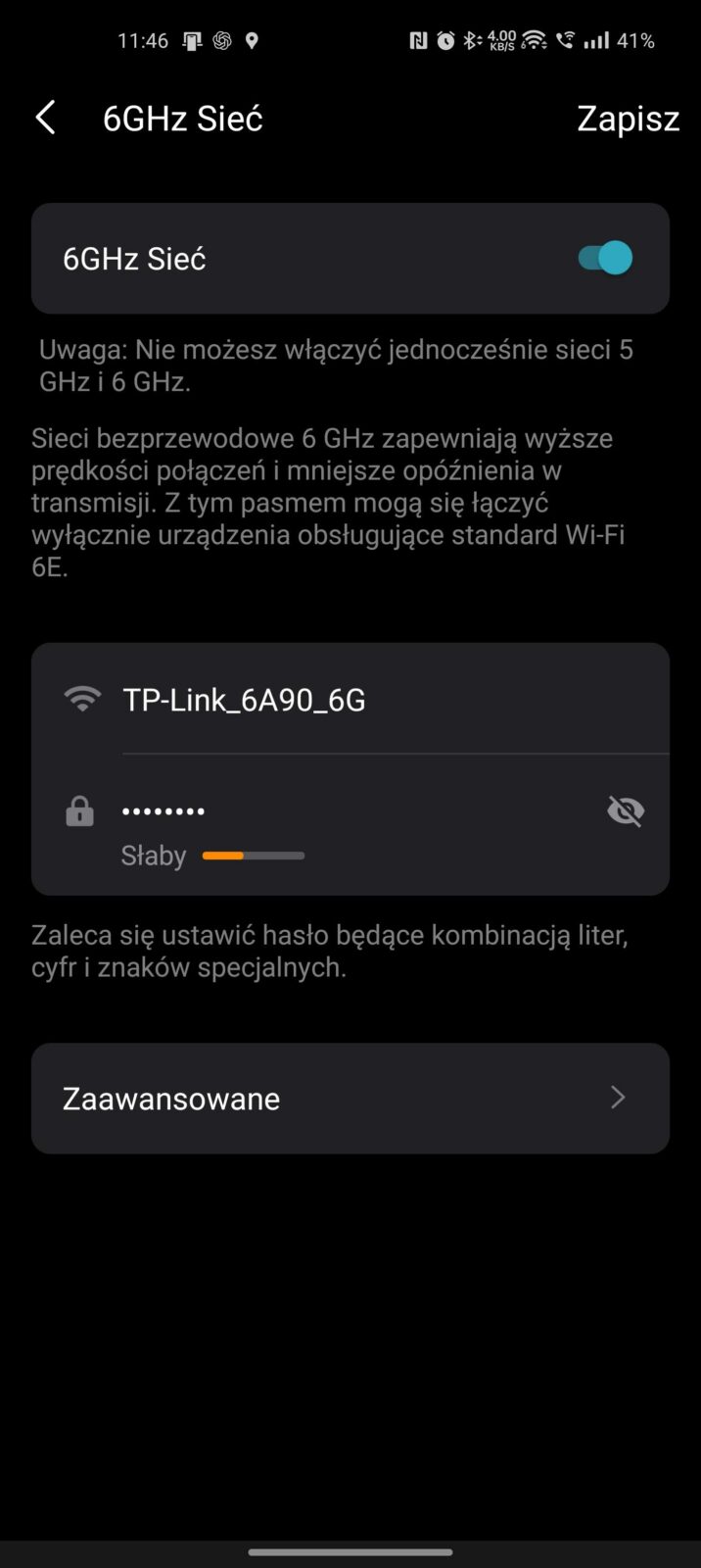 Z poziomu dotykowego ekranu M8550 wspieranego przez dwa dotykowe przyciski nawigacyjne da się przeprowadzić konfigurację, a następnie sprawdzić zużycie danych, siłę sygnału, liczbę podłączonych urządzeń, ustawienia Wi-Fi, tryby pracy czy funkcje związane z bezpieczeństwem. Wszystko to w czytelny i intuicyjny sposób, więc ktokolwiek, kto choć raz opanował panel routera, da sobie z tym radę i to mimo znaczącej rozbudowy zaplecza samych funkcji. Najważniejsza funkcja sprowadza się do wybrania, czy chcemy wyłącznie połączenie 6 GHz/5 GHz/2,4 GHz lub jednoczesne działanie 6 GHz/5 GHz z 2,4 GHz,