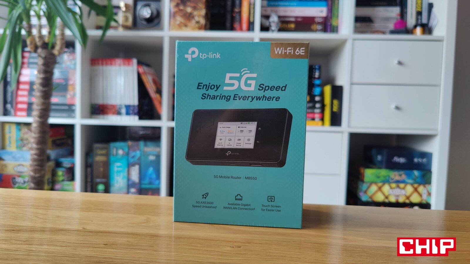 Zacznijmy od tego, że mobilny router Wi-Fi M8550 to przykład sprzętu, który nie ogranicza się wyłącznie do obsługi łączności 5G, lecz całym pakietem dodatków, funkcji i rozwiązań sugerujących znacznie ambitniejszy charakter. Mówimy bowiem o urządzeniu, które poza modemem 5G i obsługą standardu Wi-Fi 6E (pasma 2,4/5/6 GHz) ma też ekran dotykowy, port LAN/WAN, slot na kartę pamięci, obsługę anten zewnętrznych, wsparcie VPN i wymienny akumulator.