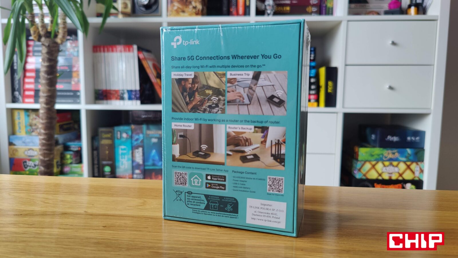 Drugi scenariusz to mobilne zaplecze dla małego zespołu lub zestawu urządzeń pracujących w jednym miejscu przez kilka godzin. Tu przewaga nad telefonem robi się jeszcze większa, bo M8550 obsługuje do 32 urządzeń jednocześnie i daje też port LAN. Nietrudno więc wyobrazić sobie sytuację, w której taki router trafia na plan zdjęciowy, do małego studia, warsztatu, stoiska targowego albo tymczasowego biura. Wtedy jedno urządzenie rozdaje sieć laptopom, kamerze, drukarce, terminalowi czy innemu sprzętowi sieciowemu, a całość nie opiera się na prowizorycznym hotspotcie ze smartfona, który akurat musi jeszcze odbierać połączenia i służyć do wszystkiego innego.