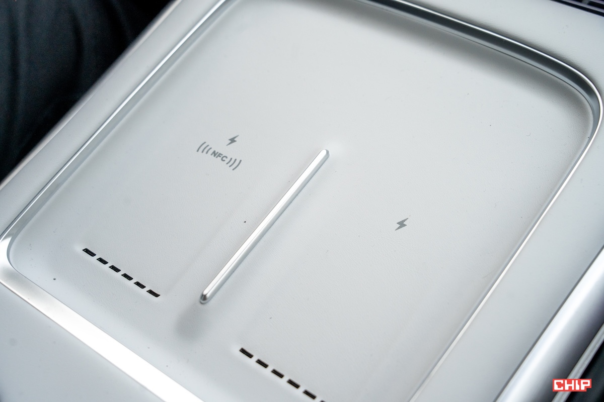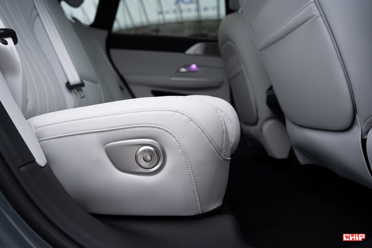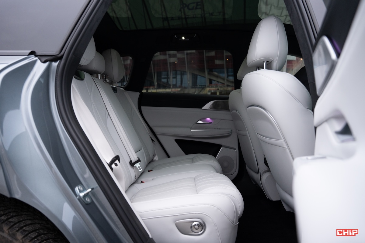 I właśnie dlatego to wnętrze tak silnie przywołuje skojarzenia z Teslą. Nie chodzi nawet o sam minimalizm, tylko o hierarchię ważności. Najpierw interfejs, potem reszta. Różnica polega na tym, że XPENG nie zatrzymał się na technologicznej surowości, bo G9 ma w sobie znacznie więcej miękkości i luksusu. 95 procent powierzchni jest wykończonej materiałami miękkimi w dotyku, a w opcjonalnym pakiecie Premium Comfort & Audio pojawia się skóra Nappa, komfortowe fotele, masaż czterech siedzeń, wentylacja tylnych foteli, elektryczna regulacja tylnego oparcia i system audio Dynaudio XOPERA Dolby Atmos o mocy 2250 W z 20 głośnikami. Nawet w standardzie dostajemy jednak dwie ładowarki bezprzewodowe 50 W (więc do chińskiego auta przyda się chiński smartfon, bo w większości tylko one wspierają takie ładowanie bezprzewodowe), dwustrefową klimatyzację, pompę ciepła X-HP 3.0 oraz system oczyszczania powietrza XfreeBreath z filtrem pyłków i PM2,5.