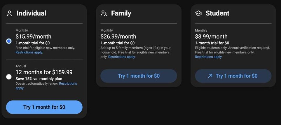 - Plan Indywidualny: cena wzrosła do $15,99 (z $13,99). W przypadku opłaty rocznej to wydatek rzędu $159,99 (zamiast dotychczasowych $139,99).