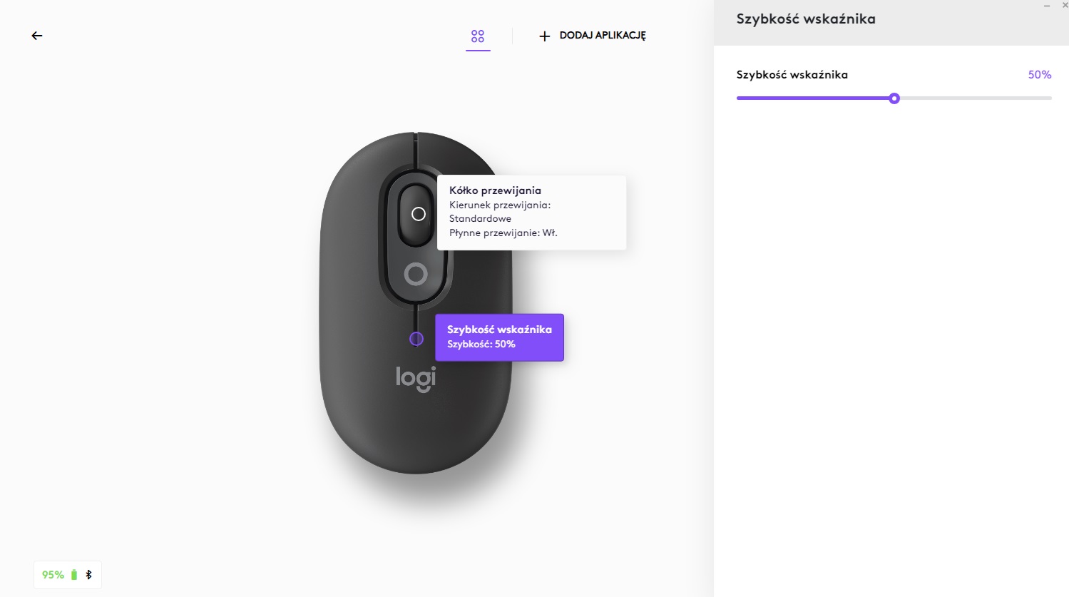 Myszkę, podobnie jak klawiaturę, możemy spersonalizować. Dowolne działanie możemy przypisać do przycisku na górze obudowy oraz wciskania pokrętła. Dotyczy to całego systemu, jak i konkretnych aplikacji. Możemy też zmienić szybkość wskaźnika w pełnym zakresie 0-100% oraz kierunek przewijania (dla tych dziwnych ludzi, którzy korzystają z tego ma MacOS, jak tak można?!).
